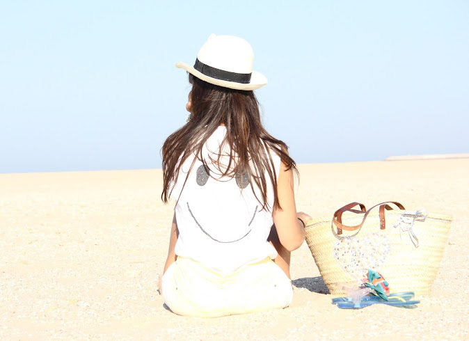ooohhh que chula la camiseta! Buen rollo total. Estupendo el look playero y las fotos 🙂