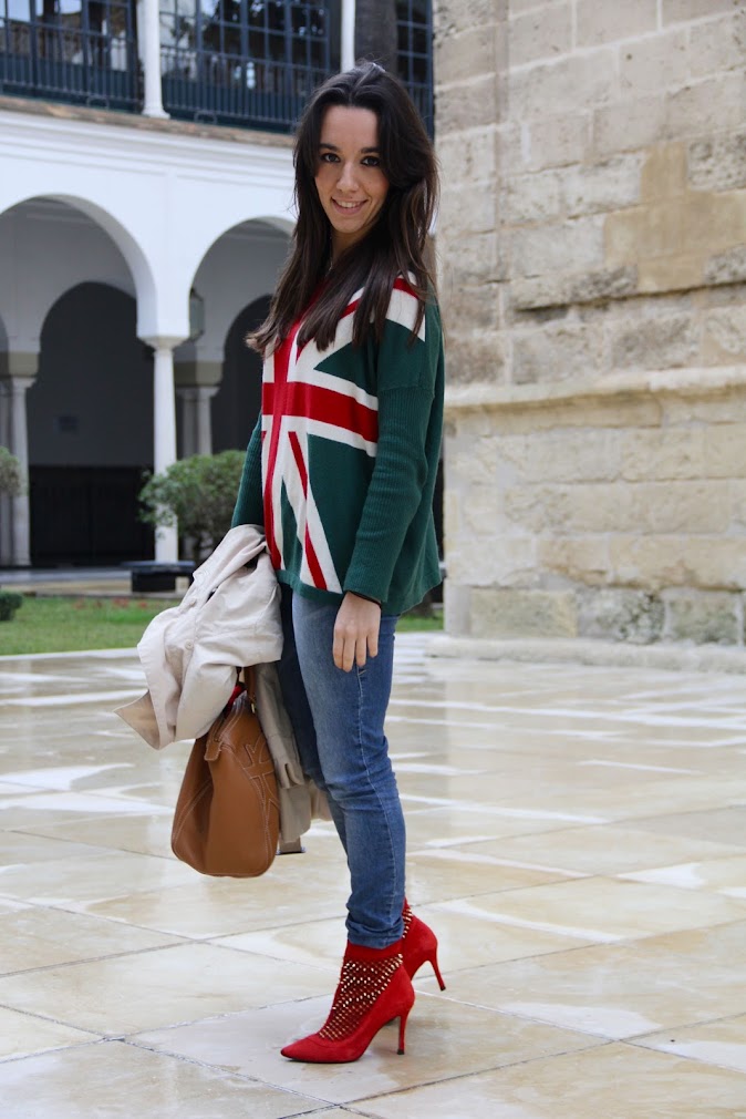 marzo 1, 2013 at 09:43Hola, me encantan los jerseys con bandera el tuyo es ideal. Te queda muy bien con esas preciosas botas. También tengo varias gabardinas como la tuya. Me gustan mucho. Seguimos en contacto