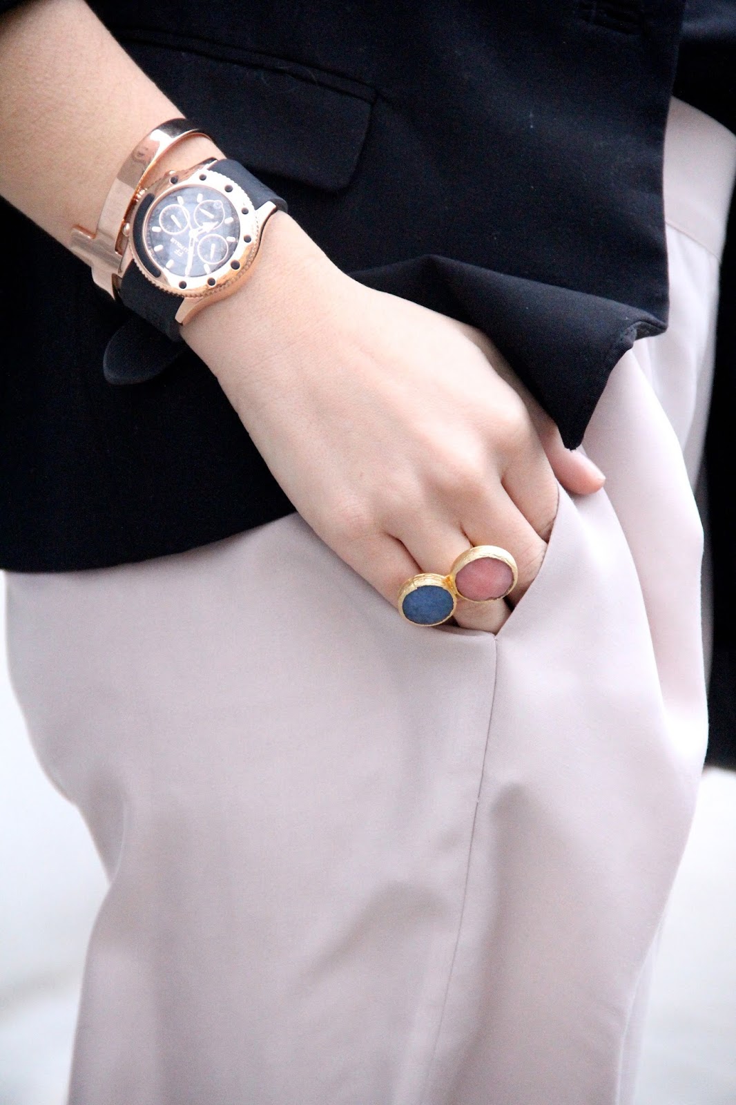 Con los complementos siempre tengo el mismo dilema, las pulseras y brazaletes fijos me suelen estar enormes al igual que los anillos que parecen hechos para medidas muy grandes, así que más de una vez no puedo comprarme cosas porque por mucho que me empeñe no son de mi talla. Por eso cuando vi los maxi anillos de Lusstra me entró la misma duda, pero cual fue mi sorpresa cuando llegó a casa y tachan son ajustables por lo que me quedaba perfecto!!! Creo que un día de estos podríamos hacer un post de complementos para que conozcáis curiosidades de mi joyero.