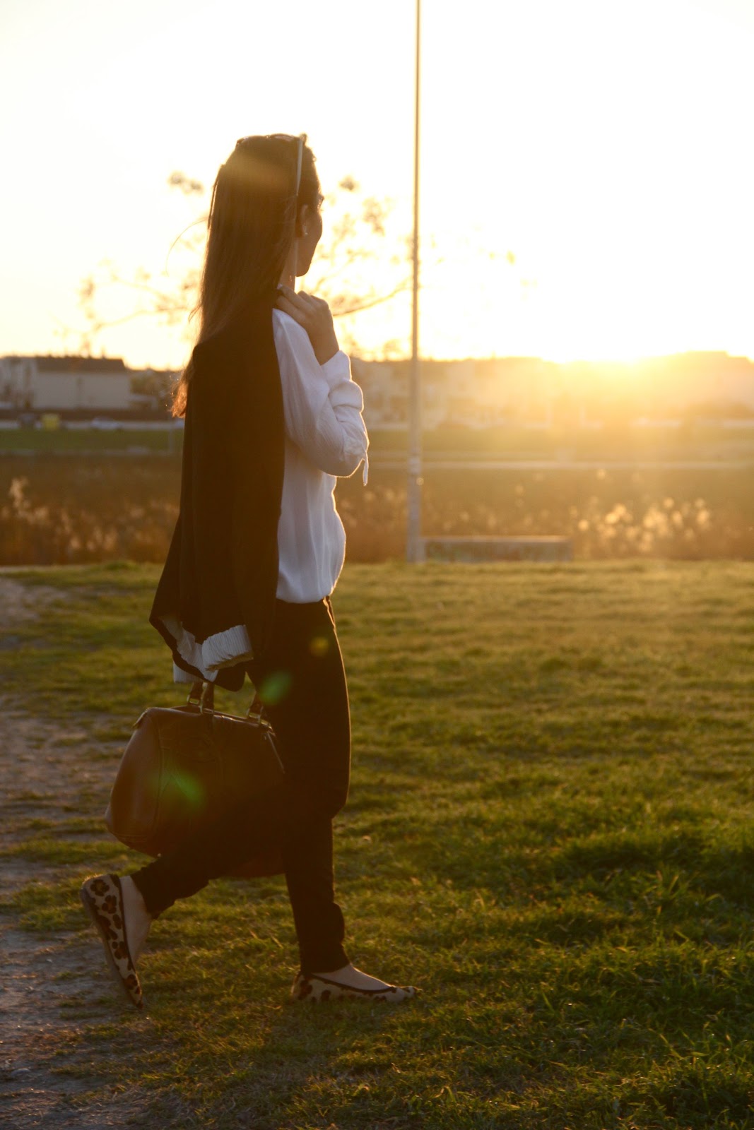 El look de hoy volvemos a recurrir a prendas básicas y a un tandem que veremos mucho la próxima primavera blanco+negro, para romper el toque print y piel del bolso.¿Qué opináis de esta mezcla?