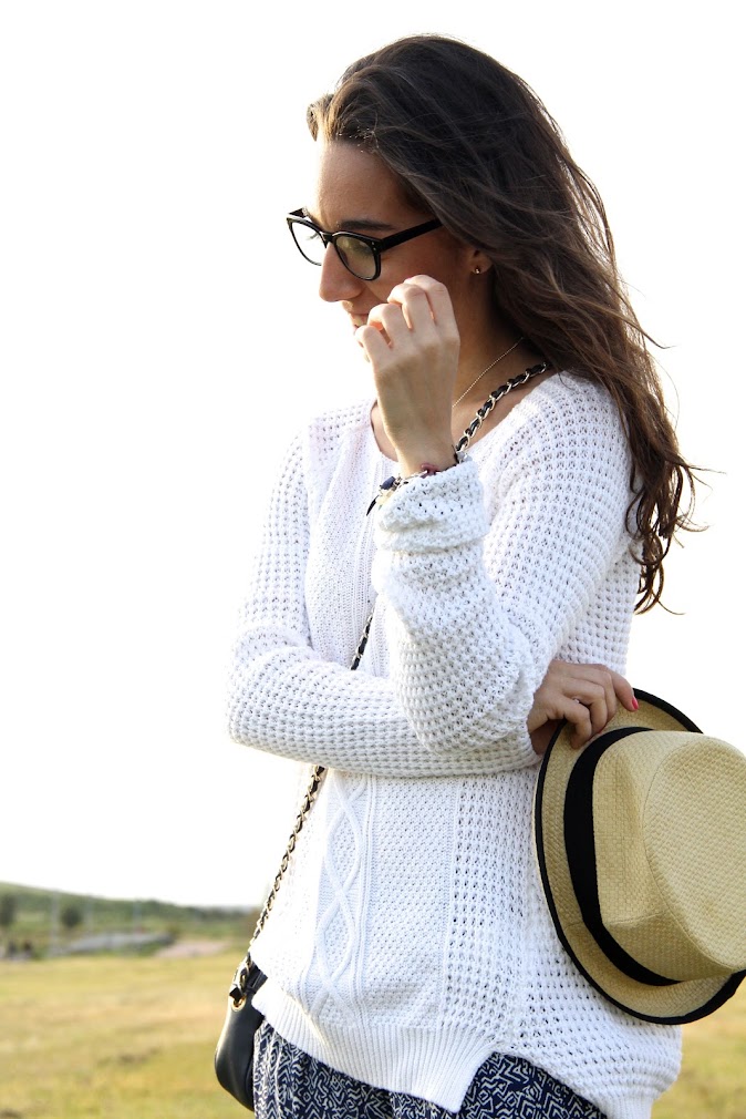 Tenía muchas ganas de estrenar estos pantalones de corte baggy, son tan cómodos que parece que no llevas nada puesto. El jersey una debilidad ya os dije que últimamente prenda que veo blanca, prenda que se viene conmigo.