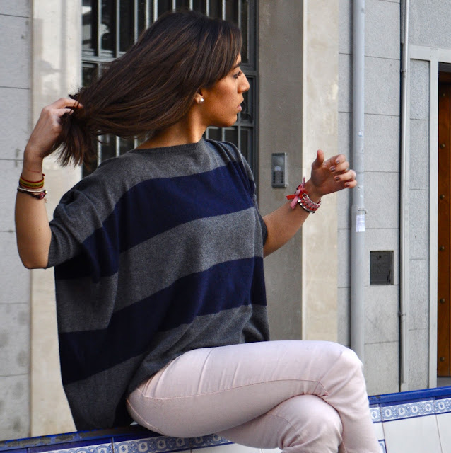 Sobre el look, qué me gustan este tipo de prendas con el corte de “murciélago” o que de alguna forma rompe con lo típico. Me canso de todo estrecho, o todo ancho. Una forma de estilizar pero rompiendo lo tradicional. Éste jersey tiene ese tacto suave parecido a la angora que tanto me gusta, además un dato para mi muy importante ¡NO PICA! No se si os habrá pasado pero más de una vez se me ha antojado un jersey y cuando he ido a probármelo,