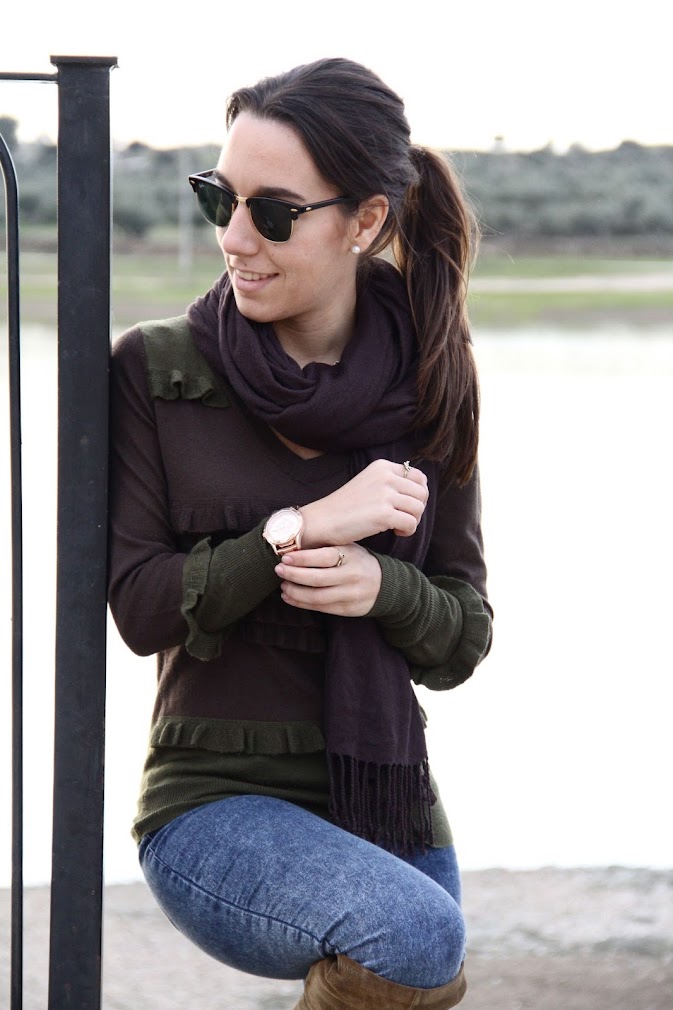 Como os conté a través de las redes sociales, los últimos y primeros días del año lo hemos pasado con la familia política en tierras extremeñas. La mayoría de los días nos tocó con lluvia pero pudimos fotografiar algunos looks. El frío obligaba a salir con un buen chaquetón, ya os dije que volveríais a verlo por aquí porque es el más cómodo y calentito que hay en mi armario. Este es el look que elegí para ultimar las compras del nuevo año. Sencillo pero con un toque especial gracias a las botas de caña alta y los volantes del jersey. El verde es uno de esos colores que siempre me ha parecido muy combinable y favorecedor ¿no os parece?