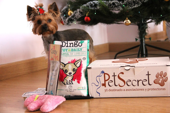 Hoy comparto protagonismo con la pequeña Bimba, además os presento a su prima, Lola, si habéis leído bien son Bimba y Lola. Bajo su árbol le dejaron una cajita de Petsecret a cada una, se volvieron locas al verlas pero Bimba le pareció una poco y no dejaba a Lola coger nada, ya lo veréis en las fotos. Os la recomiendo si queréis sorprender a vuestra mascota, o a sus dueños.