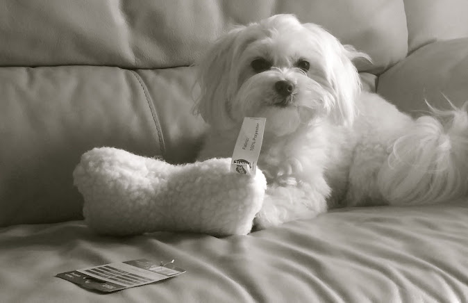 Como cada mes la cajita de Mascoticlub llegaba a casa y Bimba a veces prometo que sólo le falta hablar, llega el paquete y parece que lo conoce y sabe que es para ella porque se vuelve loca. Nos encanta ponerle la caja en el suelo para que tenga que olisquearla y dar vueltas a su alrededor hasta que al fin se la abrimos para que descubra todos los regalitos. Si se la damos abierta desde el principio lo que hace es coger lo que más le llame la atención en un primer momento y llevárselo corriendo para que nadie se lo quite, el momento foto es un auténtico show que alguna vez grabaremos para que os riáis porque es un bichito rodeada de tantos regalitos. En esta ocasión lo primero que cogió fue el hueso peluche. Las cajitas ultimamente vienen con productos artesanales de “repostería canina”, esta vez eran unos pequeños rosquetes que creo que nos lo ponen en un plato y nos los comemos porque tienen hasta buena pinta, se los racionalizamos porque si por ella fuera se zampaba la caja en dos días. Si tenéis mascotas os recomiendo que probéis al menos un mes, el precio es económico, os permite probar productos nuevos y la alegría de vuestra mascota os compensará porque es genial ver sus caritas de alegría cuando le das sus regalos. Espero que paséis un buen sábado, mañana os espero no falléis,