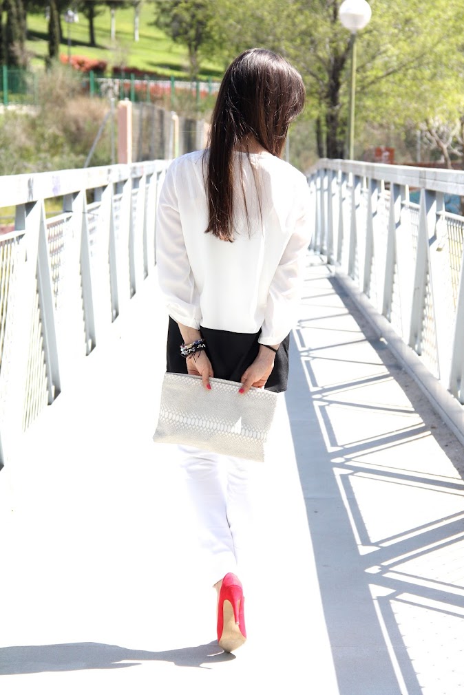 Siiii al fin el sol y las buenas temperaturas han aparecido, ¡ya era hora! que con tanta agua ya creía que me iban a salir branquias. Aprovechando las buenas temperaturas el sábado decidimos salir de terracitas, el blanco es uno de mis colores preferidos a la hora de vestir, no me canso y siempre que voy de tiendas suelo caer en la tentación, nunca me parece que tenga pocas cosas de éste color. Como la una de las tendencias estrellas de la temporada es la combinación blanco+negro, aquí os traigo la primera propuesta, ¿qué os parece?