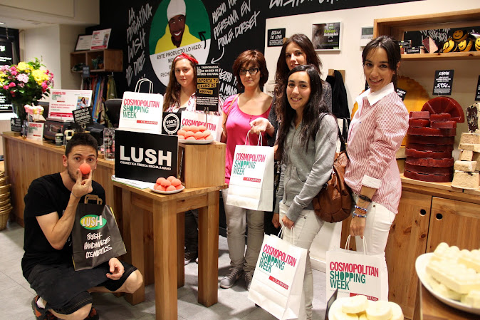 Las que me seguís por las redes sociales ya sabíais donde estuve ayer, pero ahora os desvelo el motivo. Esta semana se esta celebrando la shopping week cosmopolitan en ciudades como Sevilla, Madrid, Tenerife y Barcelona, si vivís en alguna de estas ciudades no dudéis en disfrutar de ella. Distintas marcas aprovechan estos días para realizar talleres y presentaciones que nos acerquen sus productos. Y ayer disfruté de la mano de los chicos de Lush de una tarde de olores y colores muy especial. Tras conocer los orígenes de la marca inglesa, las tiendas y sus productos se inspiran en tiendas de quesos, pastelerías, etc tradicionales. Sus bases son todos ingredientes naturales que no testan en animales. Se deben tanto a la naturaleza que tienen productos que sólo los venden en épocas concretas del año ya que la materia prima sólo existen en esos meses concretos. Además como tienen formatos sólidos, a la hora de viajar es más cómodo, cuentan con línea de baño, otra para el pelo, hidratantes y productos faciales. Yo conocí la marca cuando hace años viví en Irlanda, pero aun así ando probando algunos productos para en breve contaros mi experiencia.