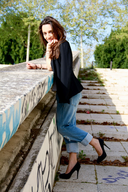 Tenía ganas de sacar mis boyfriend jeans del armario así que voilá, aquí tenéis el primero de los muchos looks que me veréis con esta prenda porque ¡son comodísimos!.