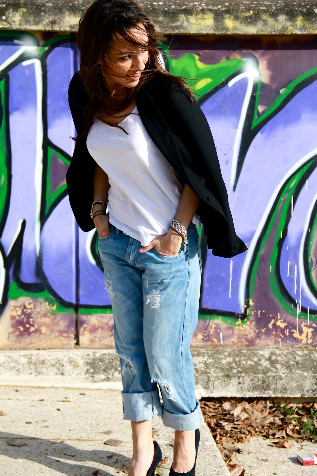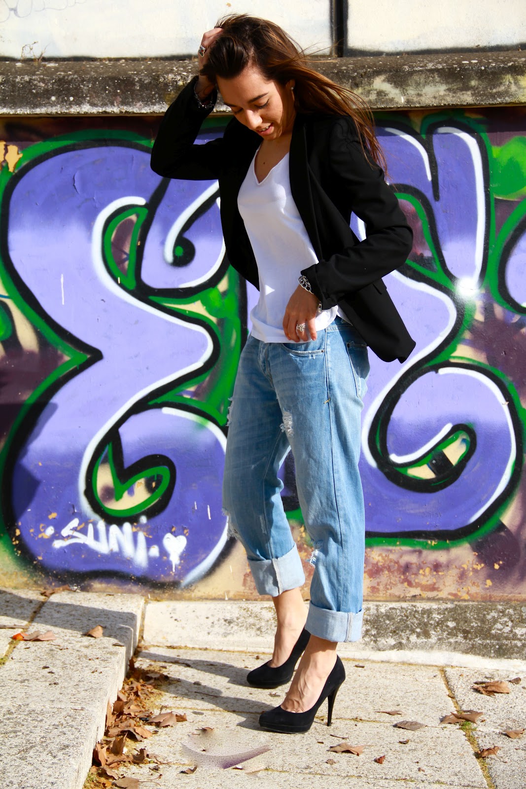 Tenía ganas de sacar mis boyfriend jeans del armario así que voilá, aquí tenéis el primero de los muchos looks que me veréis con esta prenda porque ¡son comodísimos!.
