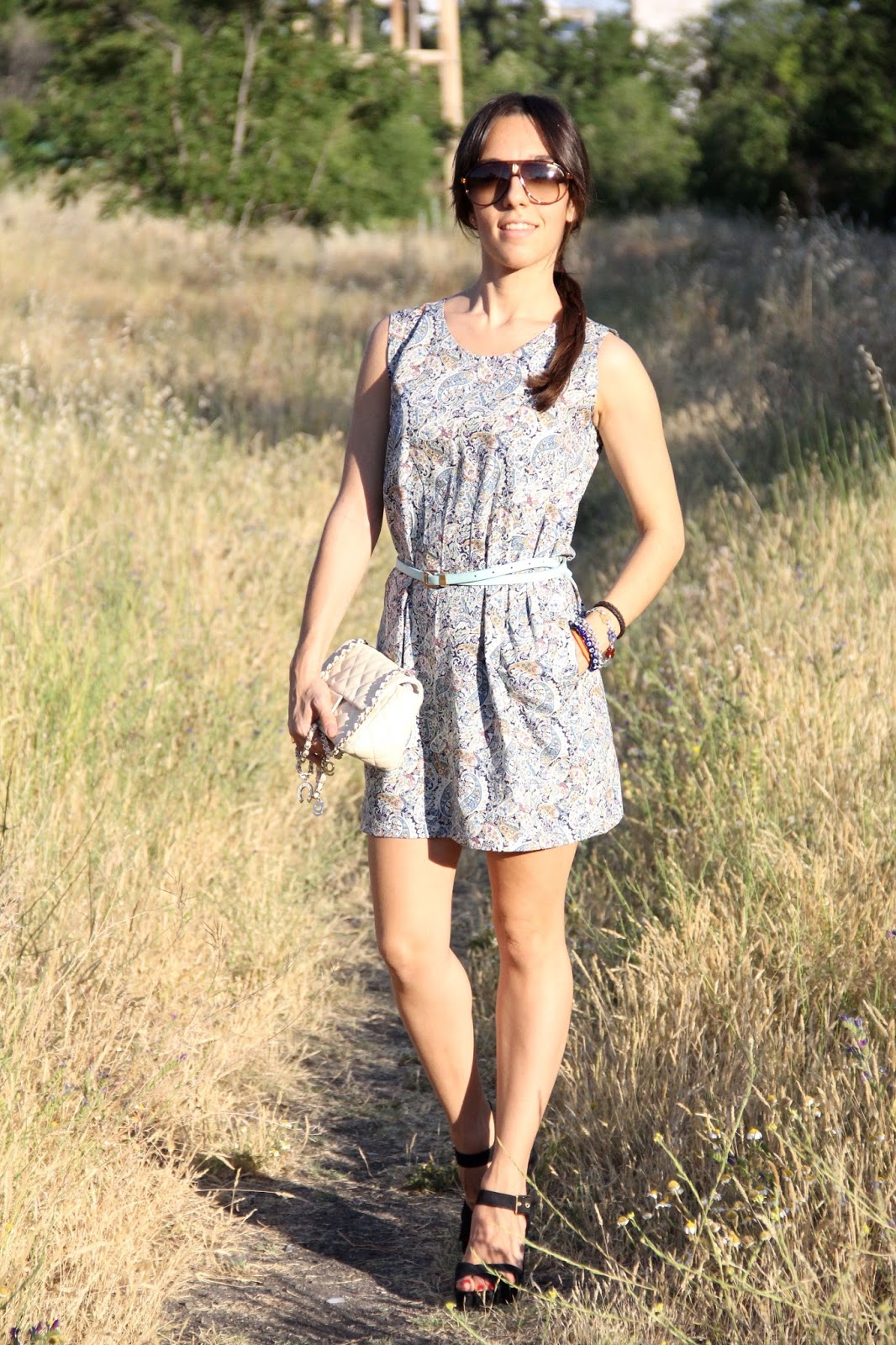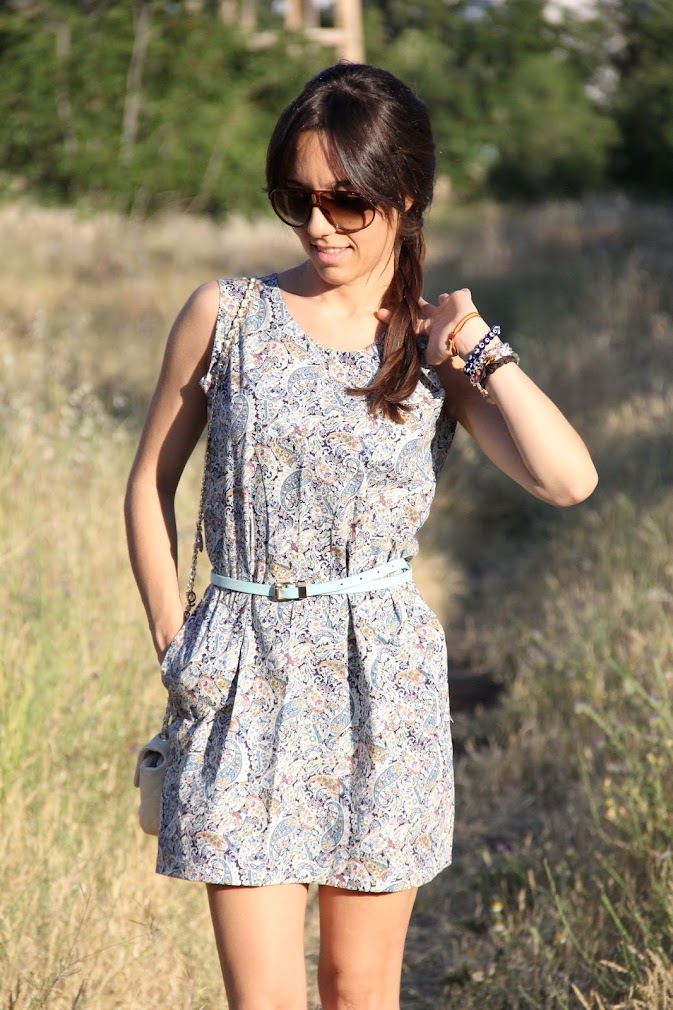 Ya tenemos ganadora del concurso de Firmoo, enhorabuena a María Balboa en un ratito me pondré en contacto contigo.Y el resto no os desaniméis porque pronto tendréis la oportunidad de participar en más concursos, publicaré el resultado random por las redes sociales. Hoy os traigo otro look con vestido de corte lady, con dos bolsillos y un precioso estampado de cachemir, sencillez 100%. En verano suelo buscar prendas fresqueras y cómodas, por eso cuando vi esta tela inmediatamente pensé en cómo sería el vestido. El cinturón es de soyunachicanormal, descubrí la marca en el último showroom que acudí en Madrid y merece la pena, son prendas diferentes con mucha calidad,y un acabado muy bueno. Espero que os guste el look y disfrutéis de las fotos.