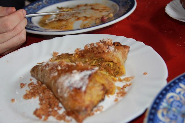 Una de las mejores cosas de viajar, al menos para mi, es tener la oportunidad de probar los platos característicos del lugar, y para ello fuimos a uno de los restaurantes marroquí que hay en la ciudad. Desde su entrada pareces transportarte a otro lugar, la decoración, los detalles, la comida…no puedo decir que me gustó, tengo que decir que me encantó todo. Pudimos disfrutar de una ensalada de zanahorias, ensalada de berenjena, bregua de pollo, cuscus, pinchito de ternera y para terminar un buen té moruno con pastas típicas. Yo no soy para nada amiga ni de café, ni de infusiones, ni de té, pues éste me lo tomaría todos los días. Como veis quedé encantada con la comida y con el sitio así que si visitáis la ciudad no dejéis de ir allí porque merece la pena.