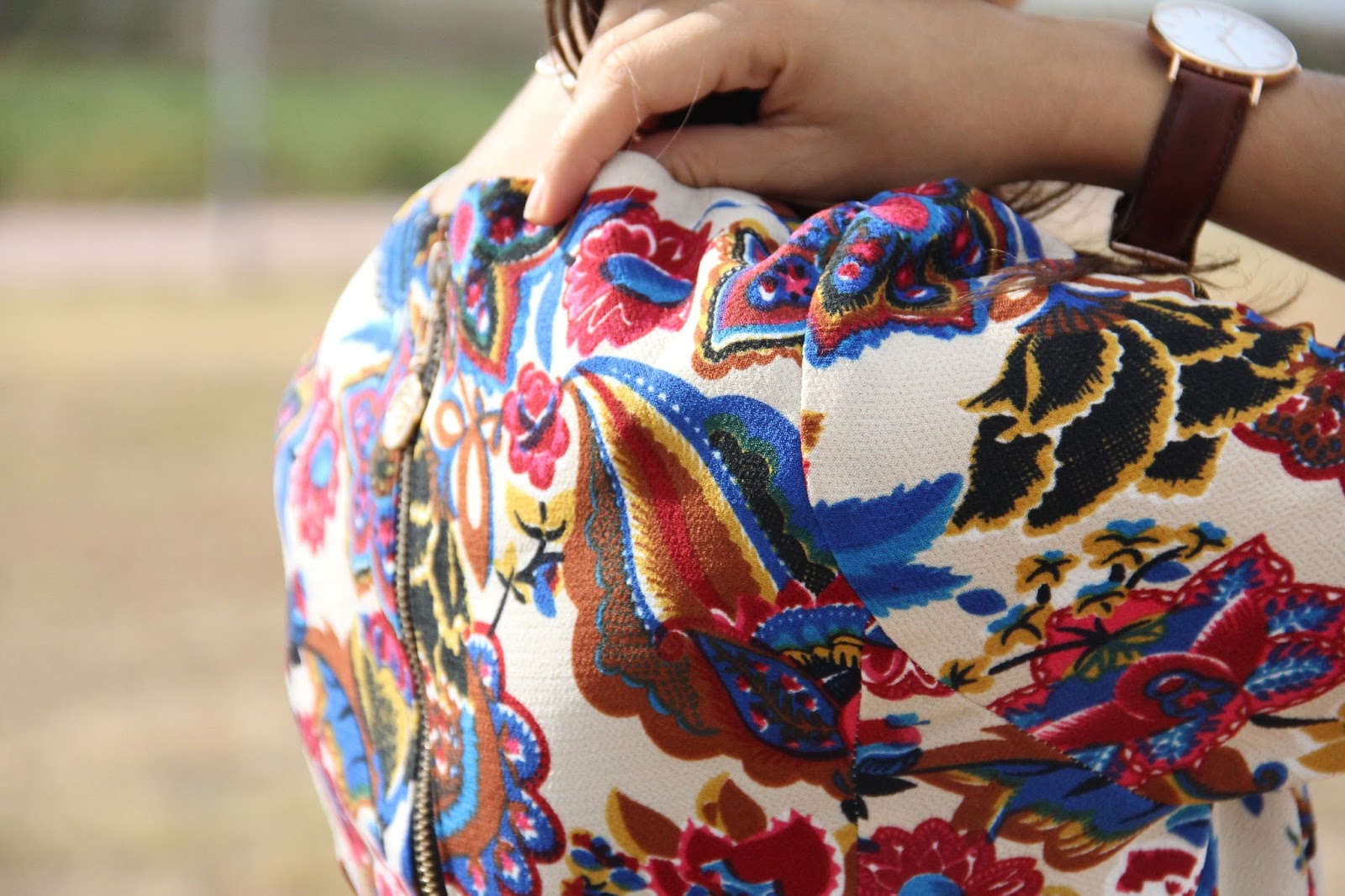 Después de un mes de no para encima de los tacones, he comenzado el nuevo disfrutando de la comodidad de las manoletinas. Tenía muchas ganas de enseñaros el último vestido en incorporarse al armario. Tiene un estampado colorido, donde el burdeos (color tendencia de la temporada) cobra protagonismo. Se me ocurren muchas formas de combinarlo por lo que os daré varias ideas muy pronto. No se si os pasa también a vosotr@s pero hay prendas que por más que lo intentas cuesta mucho darle otro aire y otras que te salen mil combinaciones solas, supongo que dependerá también de la inspiración que tengamos ese día.