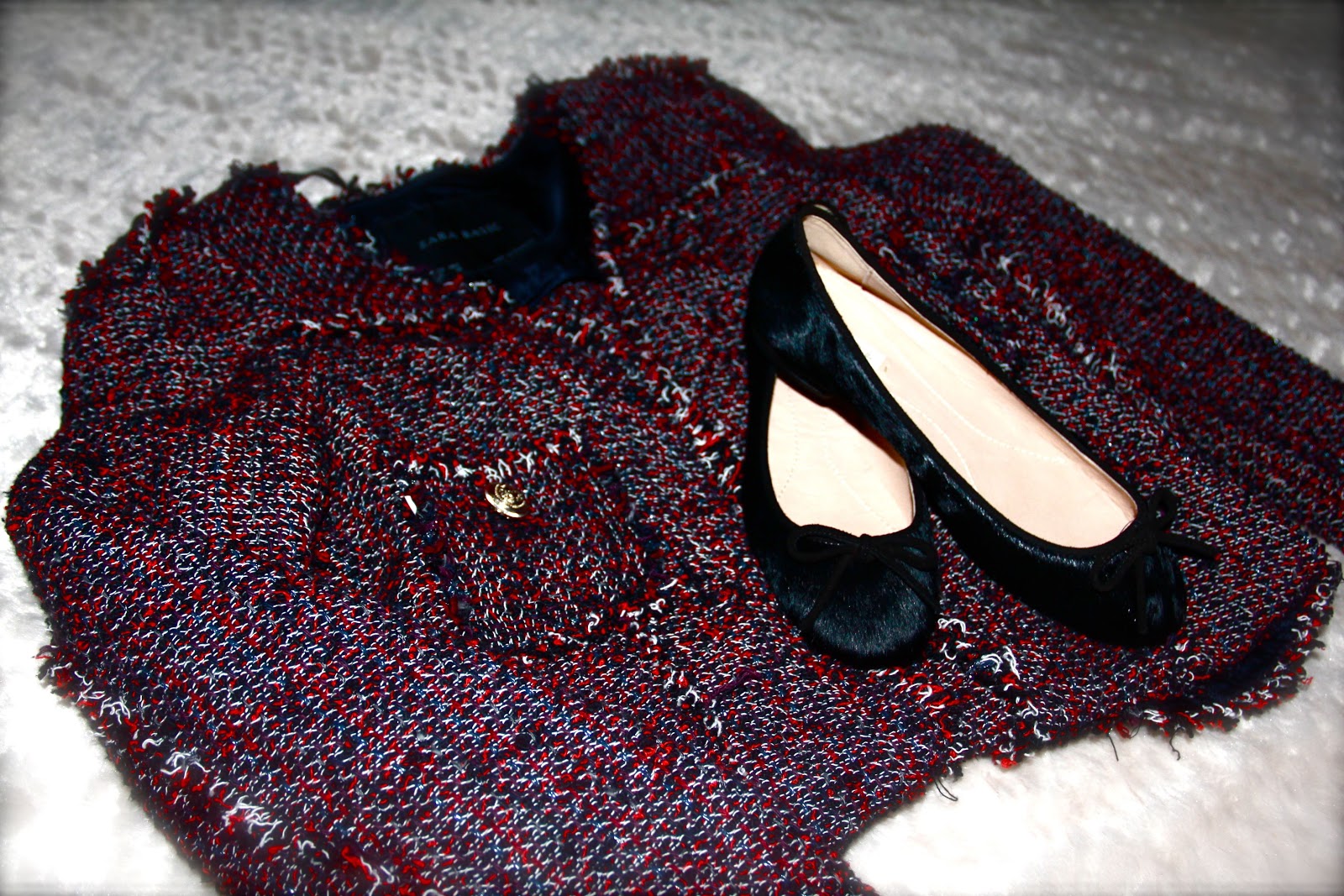 Mezclas chaqueta tweed y vaquero y bailarinas y perfecta!!!