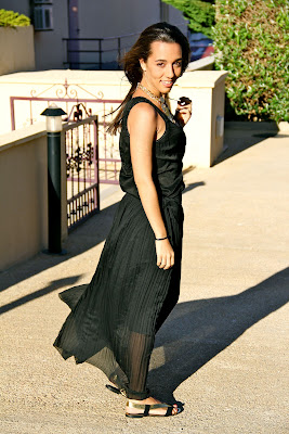 No hay look que me guste mas que el que se compone de negro+complementos dorados.Y si encima el vestido es taaaaan bonito como el tuyo,ya te digo 🙂