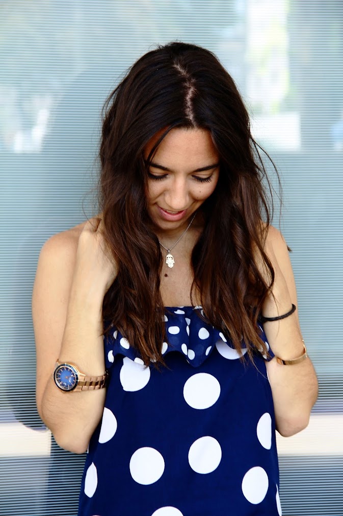 julio 1, 2014 at 17:07Muy estiloso el look! Me encanta los estampados de topos, creo que favorecen mucho y las sandalias son muy bonitas!