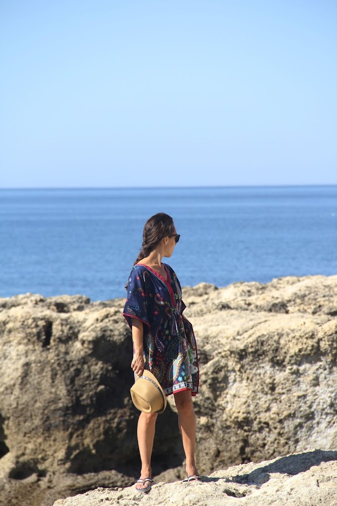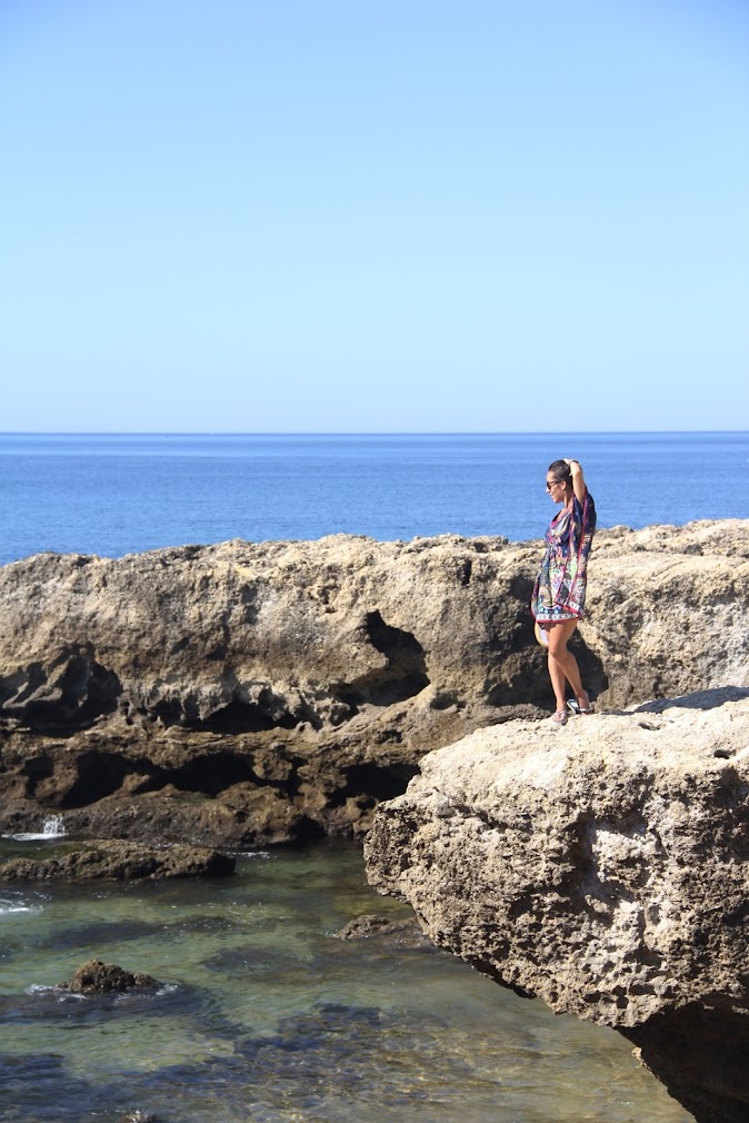 un sitio poco transitado, con poco ajetreo de gente, el sitio en el que nos alojamos estaba rodeado de zonas residenciales por lo que la tranquilidad era mayor, había bares, y tiendas pero todo en un ambiente muy relajado y tranquilo. Muy recomendable si vais buscando unos días de relax en pareja o con amigos donde queráis disfrutar de la playa y de largas noches de risas en los apartamentos o bares de la zona. Nuestra siguiente visita a Portugal tuvo como destino Portimao, en la misma tónica que Praia Da Luz, aunque en esta ocasión teníamos centro comercial cerca si querías un plan alternativo a la playa. Y éste año hemos estado en la Albufeira, creo que el sitio de marcha por excelencia. Es un rollo totalmente diferente a los dos sitios anteriores, las playas están más pobladas, hay más movimiento por la calle, cafeterías, bares, restaurantes, tiendas, centros comerciales, de todo. Además si querías playas tranquilas también hemos encontrado calas bonitas como las que os enseño hoy en las fotos, el único “incoveniente”es que la playa estaba un poco más lejos que en los sitios anteriores, aunque era un paseito agradable no era bajar y llegar. La calita que más nos gustó fue la de Dos Aveiros, y entre cala y cala estaban estos acantilados que véis hoy en las fotos, qué mágica es la naturaleza, para los que os gusté el vestido que llevo ahora esta a precio de ganga, espero que os gusten las fotos, yo ahora las miro desde el ordenador y siento nostalgia por el gran verano que he pasado, pero bueno habrá que consolarse pensado en la próxima escapada. ¿Cómo se presenta Septiembre?, espero que con mucho trabajo y cosas buenas, que tengáís un precioso lunes, mañana más y mejor, GRACIAS por estar siempre ahí.