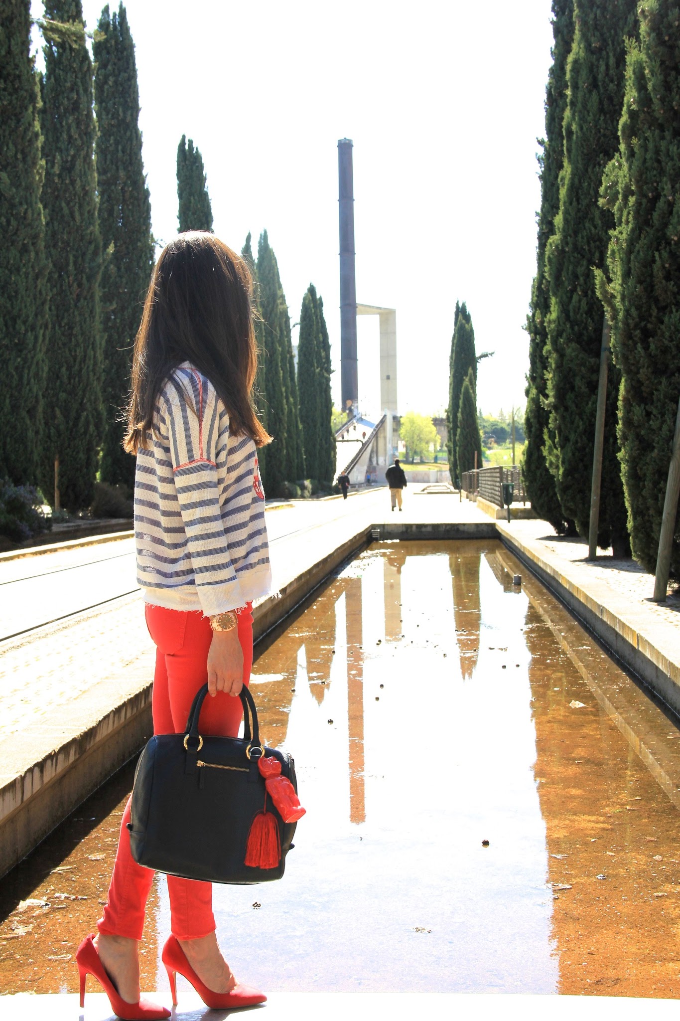 Me encanta, súper guapa! 🙂 A mi también me gusta mucho Dolores Promesas! La combinación rojo y azul es perfecta.