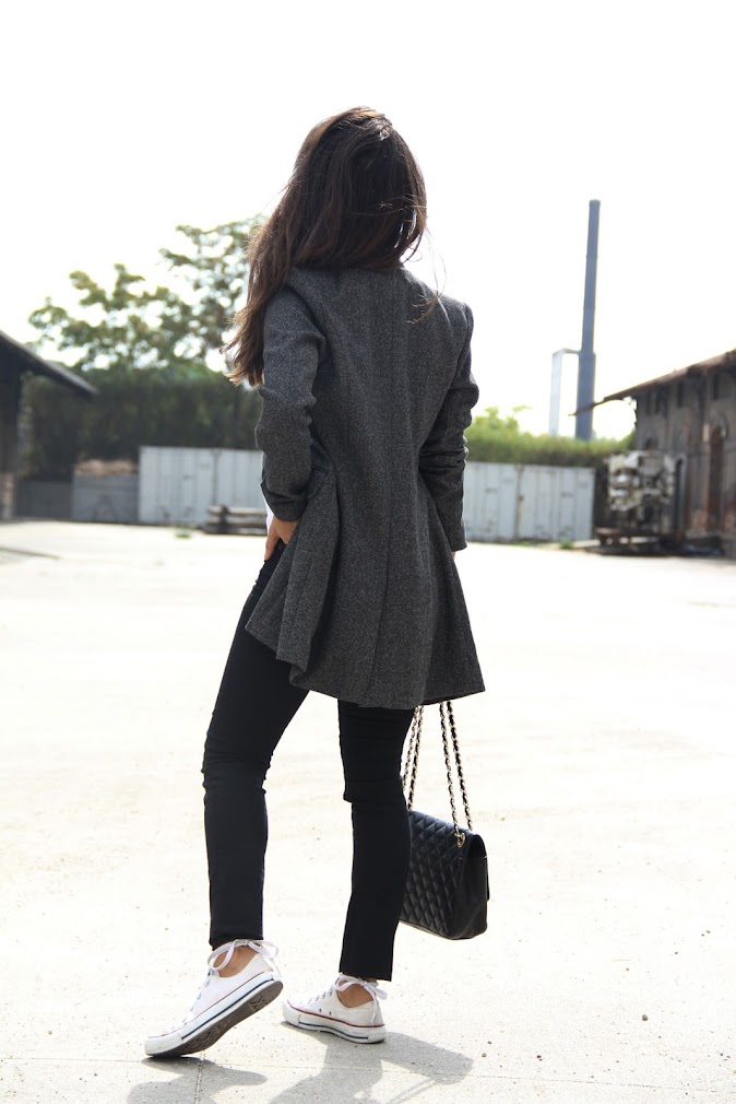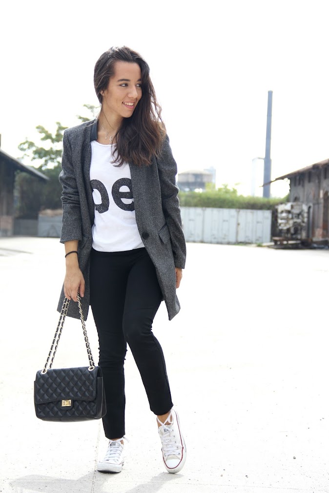 Aunque me encanten las prendas ceñidas, los pantalones pitillos y unos buenos taconazos, me encanta cambiar, ir cada día de una forma y esta tendencia nos permite dar saltos notables.Ya tengo fichadas varias prendas de estilo masculino, os las enseñaré cuando las tenga, porque aún no he encontrado esos zapatos masculinos de piel perfectos. Blazer y abrigos llenan la nueva temporada, éste es de Dándara, una marca de la que ya os hablé hace unos meses y que os seguiré hablando porque han creado una colección para este otoño invierno bonita, con calidad y con muy buen precio algo que cada vez es más difícil de encontrar, ¿porque los precios siguen subiendo?, me alucina entrar en algunas tiendas y ver que 100 euros no da a veces ni para un conjunto, así no hay economía que pueda, si es ropa para jóvenes deberían adaptarse sus precios a la cartera de los jóvenes ¿no?, es un tema que podríamos tratar en profundidad pero hoy mejor nos quedamos con un look sencillo, en una combinación infalible, el combo blanco y negro y dos prendas de tendencia, zapatillas y abrigo de corte masculino. Un look al que le daríamos un giro radical si cambiáramos las converses por unos estiletos. ¿Qué os parece? espero que lo disfrutéis, ecuador de la semana, ya no queda nada, mañana más y mejor, os espero!!!