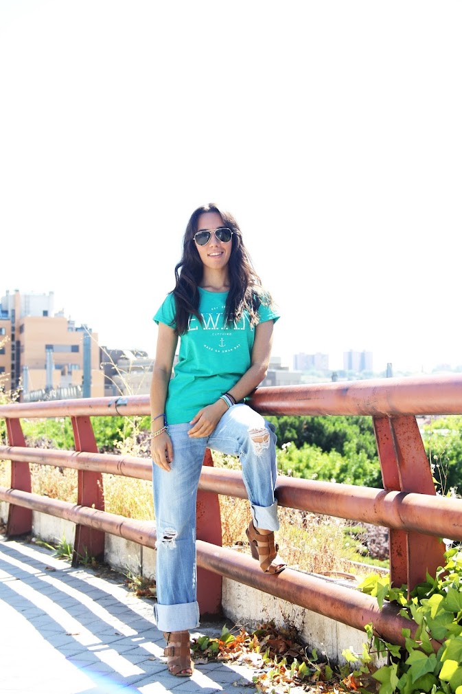 Despite all the shirts that I have, is what most still buy, I think it is the most useful clothing in hot weather allows you to create many outfits and the same goes for the night with sandals or heels that day with shoe plane or boots (depending on where you live). This is the first article of the brand that I have. Yesterday reviewing the closet thinking about packing for our trip to La Coruna I found my jeans boyfriend I bought a few summers, I remember I was interning at a sports newspaper and on the same street there are several shops and one of the days I left before I turned around and found myself in Bershka, I’ve always liked the cowboys of this store because they have a pattern that I love, I’m sure you all have your stores to buy the perfect trousers and others that have a mother pattern thtat at least I do not like it, so whenever I go to look for a jean I go to Levi’s or to Bershka (what a contrast isn’t it? haha). Okay now we are at the Ecuador of the week, could any reader of Galicia help me with the suitcase? I hope you like the photos today, 100% comfort and simplicity