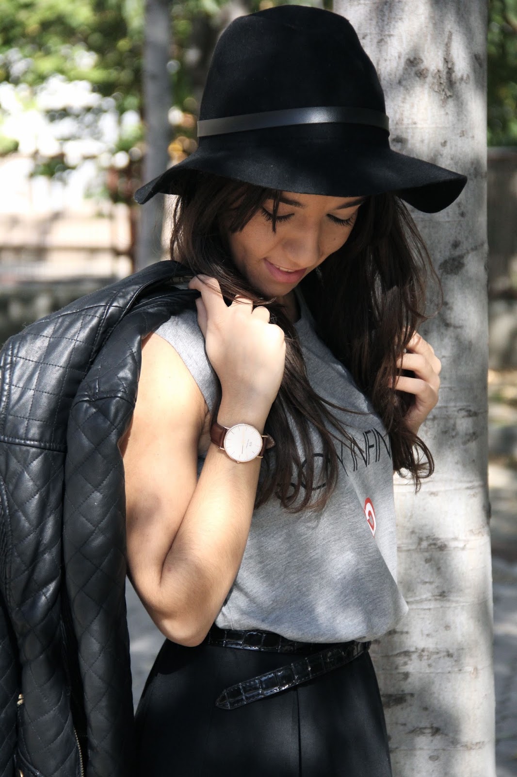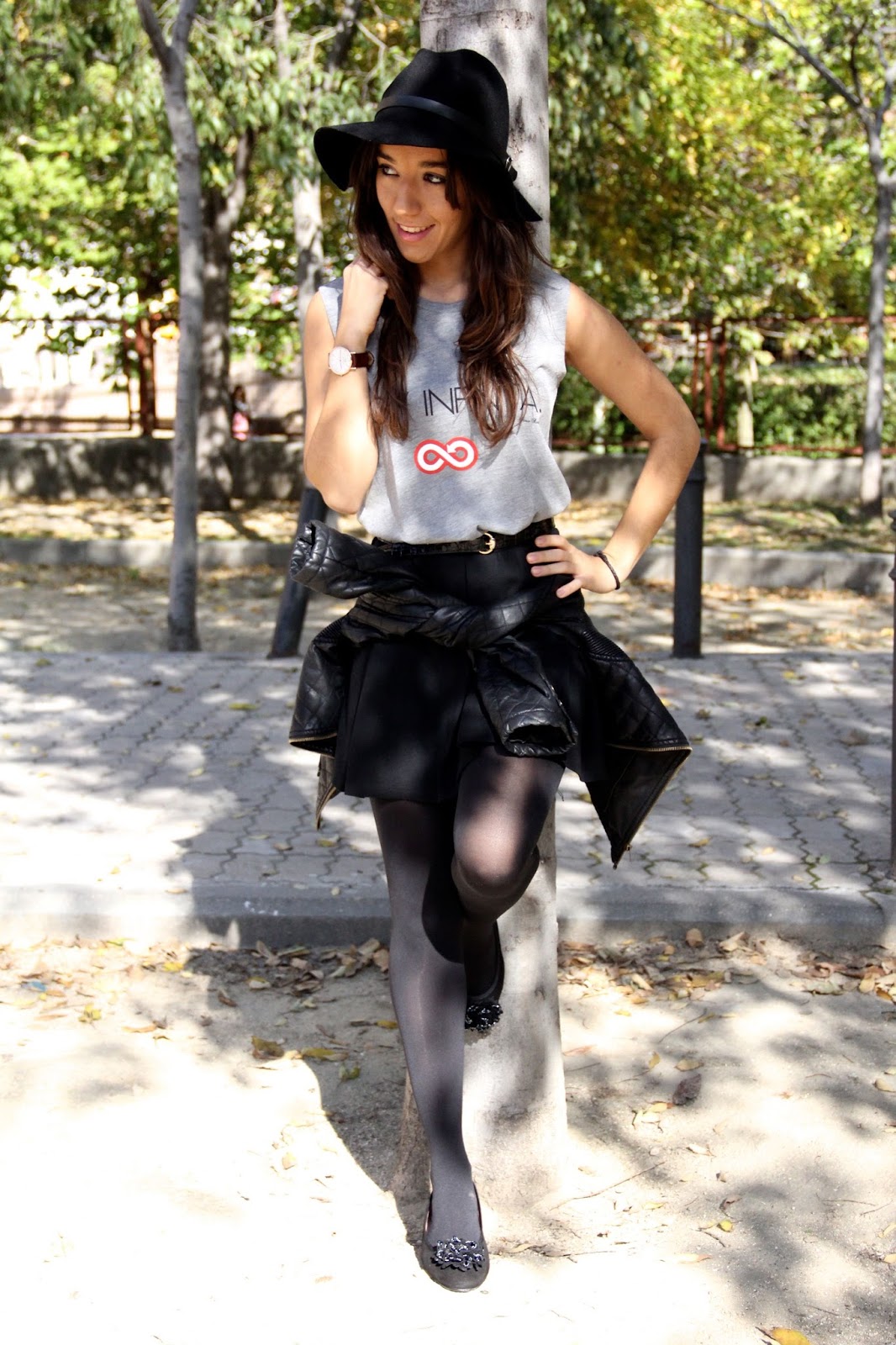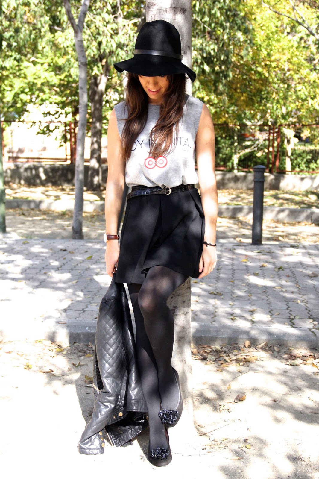 Good morning, today I show you one of the look that I chose to recording the promotional video for the new collection of Ferrutxitas (you can see it again here). But with special touches basic apparel , message t-shirt, hat , leather jacket for a more rocker and manoletinas to endure the day without sore feet air. What do you think about that kind of look?