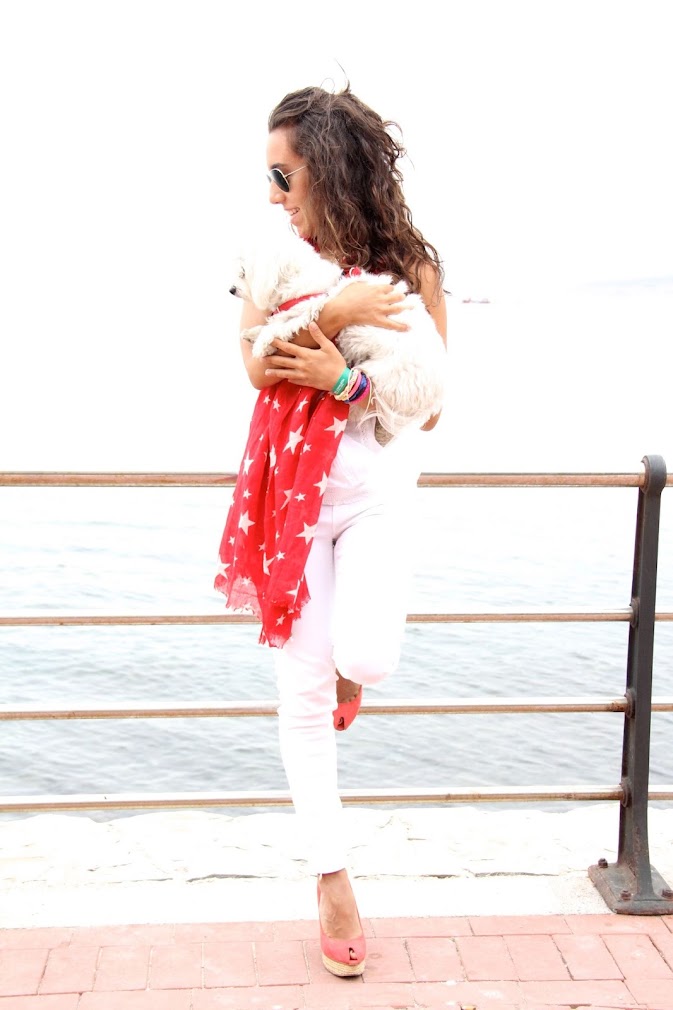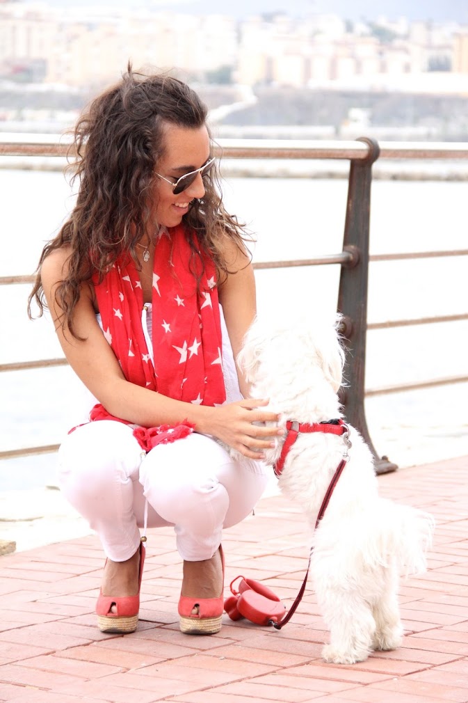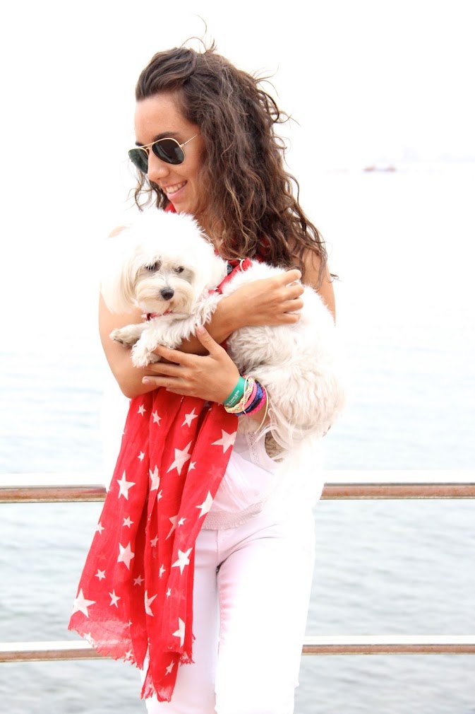 septiembre 2, 2013 at 23:02Qué bien te sienta el white and red estás super guapa y tu perrita es adorable y le queda también muy bien el rojo!!