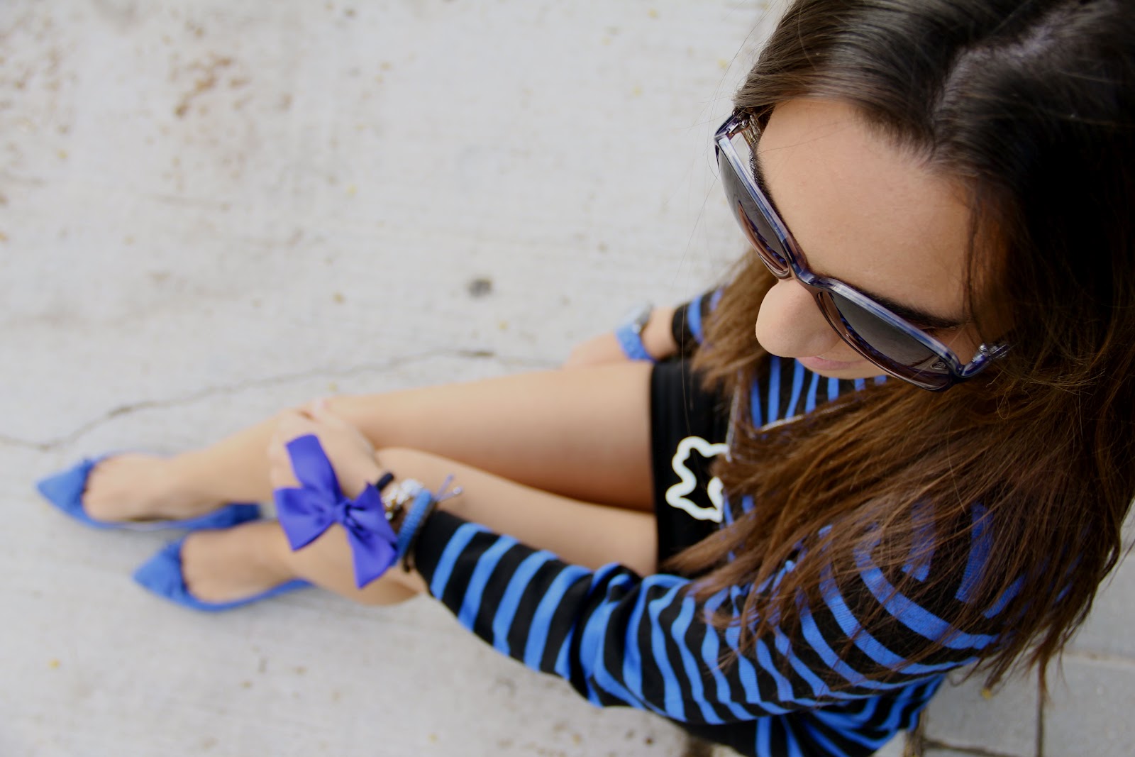 Guapiiiisima¡¡. Pero qué look más chulo nos traes hoy, me encanta el resultado de las bailarinas en el azul de la camiseta y el detalle del lazo a modo de pulsera. Un beso muy fuerte, qué disfrutes de estas mini vacaciones.