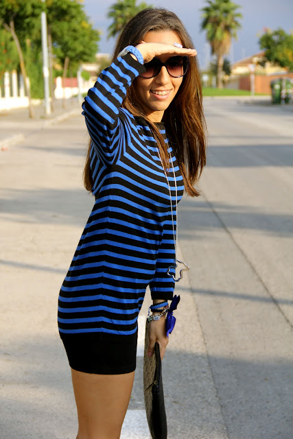 Good morning to everyone!!! Today in spain is holiday so we are so happy to have a long weekend! I show you a look with one of my favorite combinations klein + black. I love to combine tight skirts with baggy body.