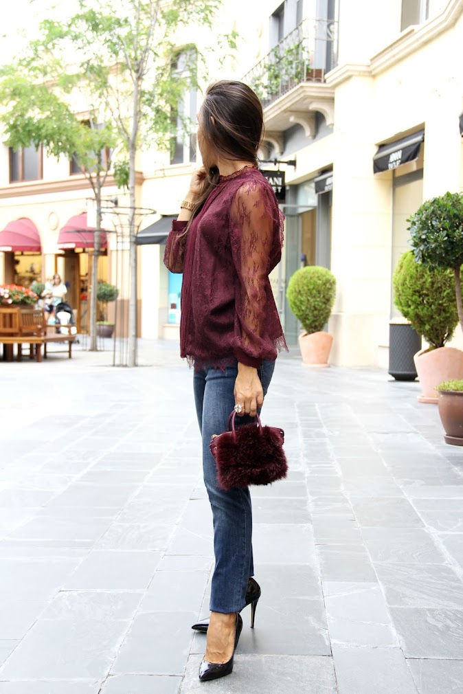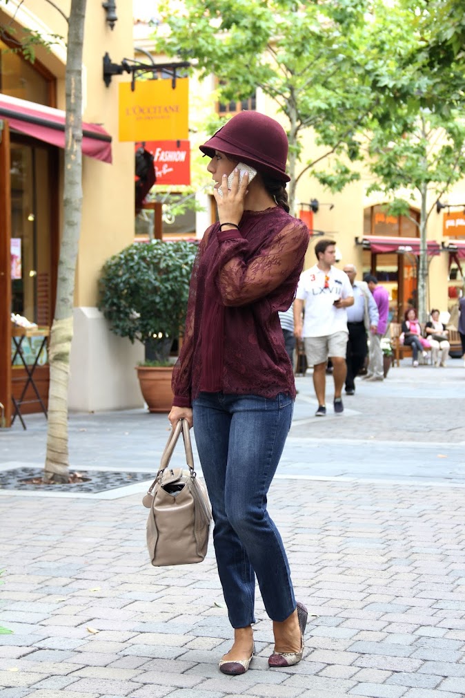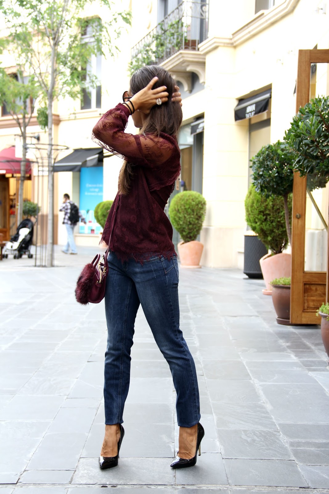 por eso para el look de día propongo sombrero, manoletinas para aportarle comodidad a nuestros pies y un bolso grande, para que nos dejemos detrás nada. Uno de los colores estrella de la temporada es el burdeos, por eso no debes dejar de tener una prenda de este color en el armario. El gran descubrimiento que tuve al visitar La Rozas Villages fue probarme los vaqueros de Liu Jo, estilizan y realzan la figura sin por ello resultar incómodos, a pesar de ser una prenda básica no por ello, es una prenda fácil de encontrar,la búsqueda del vaquero perfecto es una tarea a veces complicada, le he echado el ojo a un par de modelos de Liu Jo que me gustaría comprarme aprovechando los precios (tienen un descuento del 30%), además ahora gracias a la promoción denim hay que añadirle otro 15%). Terminamos la jornada laboral y toca disfrutar es la hora de dejar las preocupaciones laborales a un lado y despejar la mente nos soltamos el pelo y a disfrutar. Para ello es necesario dejar todo el papeleo que nos acompaña durante el día, por lo que el bolso grande nos sobra y nos basta con uno pequeño donde sólo llevaremos lo necesario. Desde que crearon la colección me enamoraron, el punto de los pelitos lo hace aún más especial, os hablo del mini bolso de Tous. Una pequeña joya que aporta ese punto al look. Dos cambios y tenemos un look complemente diferente y adaptado para la noche. Cuando vives en una ciudad como es Madrid y te mueves en un mundo como es la moda en la que todos los eventos se concentran los mismos días y con poco tiempo de diferencia no te queda otra que agudizar el ingenio, al principio me desesperaba con el tiempo que tardaba en desplazarme ahora le busco el lado positivo y lo aprovecho. ¿Qué os parece la propuesta?, ¿cuales son vuestros trucos para convertir un look de día en uno de noche?