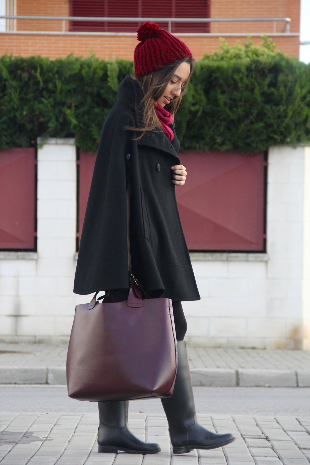 diciembre 10, 2012 at 23:38adoro la combinacion del negro y el burdeos 🙂 el look en si es genial y la capa te queda de maravilla! muaaack