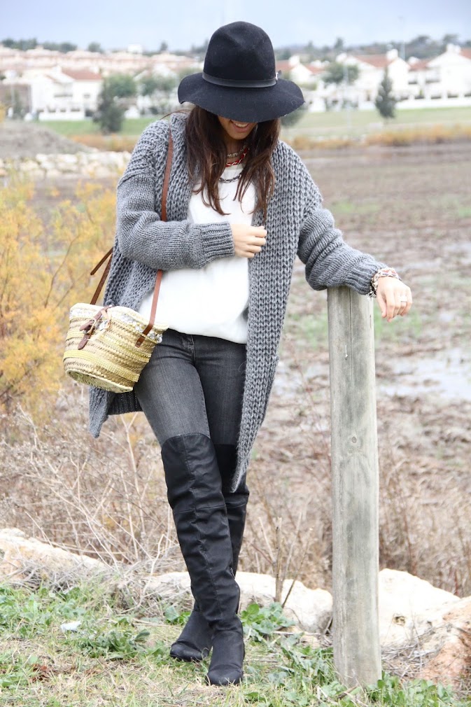 Y tu vas genial con las botas altas y el cardigan