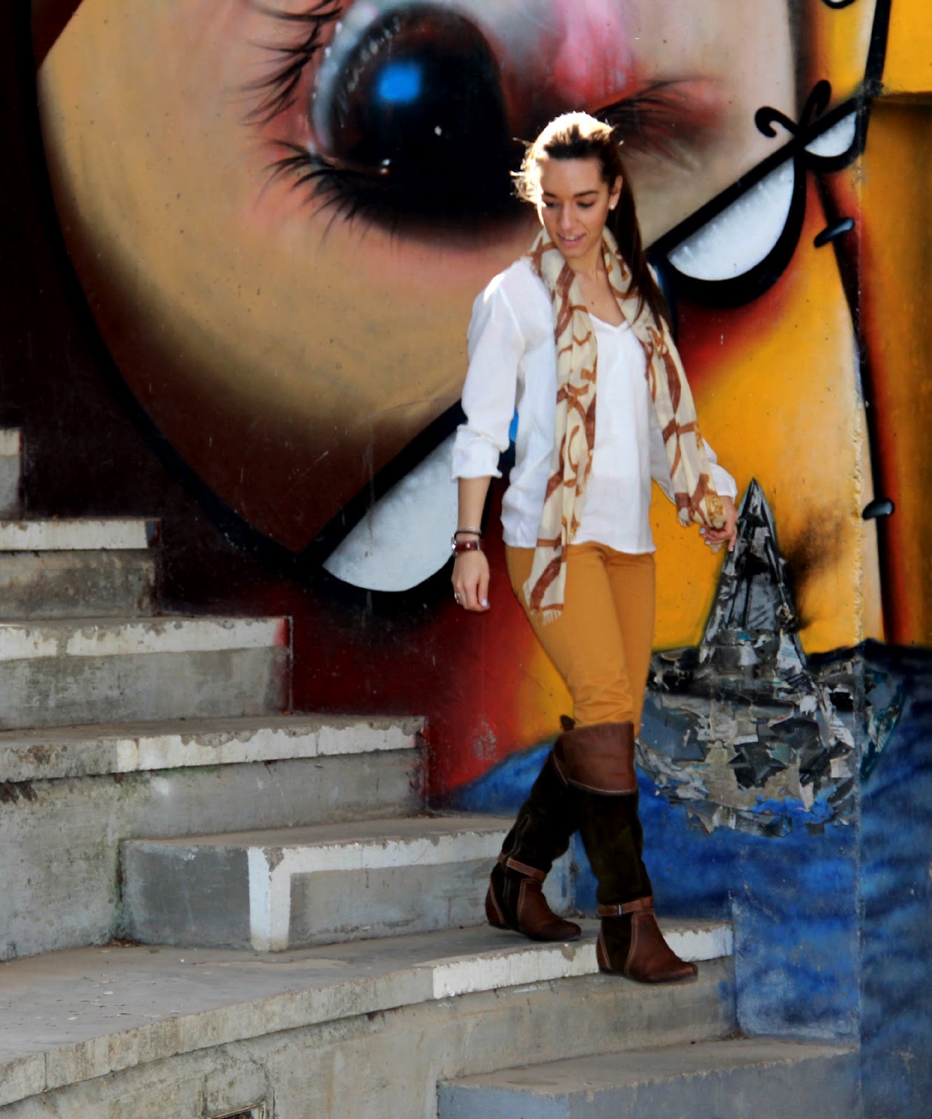 I refuse to guard in the cupboard my mustard trousers. In this occasion I put on it with a comfortable look. I think that you can use that colour in summer and winter. Every season i buy something that i can´t stop to use. And the last winter was that beautiful boots. What do you think about this colour? will be fashion the next season?