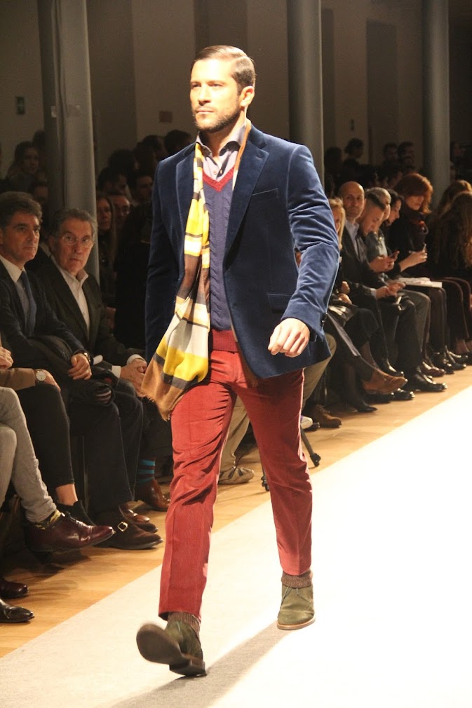 Después de varias horas peleándome con internet y el ordenador, al fin os puedo contar los detalles de los desfiles que tuvieron lugar ayer en la tercera jornada de la MFSHOW MEN. Fueron tres desfiles totalmente diferentes, y muy fieles a sus marcas. Inauguró la tarde El Ganso, mi preferido hasta ahora, la puesta en escena estuvo amenizada con un grupo de música en directo. Las prendas derrocharon estilo, y sobretodo identificación, no hacía falta que te dijeran el nombre, tu al verlas eres capaz de reconocer que son de El ganso. Al igual que el día anterior, destacaron los tonos azules, marrones y grises, con toques frambuesas, mostazas, rojos y verdes. Blazer y camisas de cuadros, contrastaban con las clásicas rayas azul, blanco y rojo. El detalle a destacar eran los calcetines, el hombre Ganso arriesga y se divierte y por eso apuesta por divertidos calcetines de rayas en todos sus estilismos.