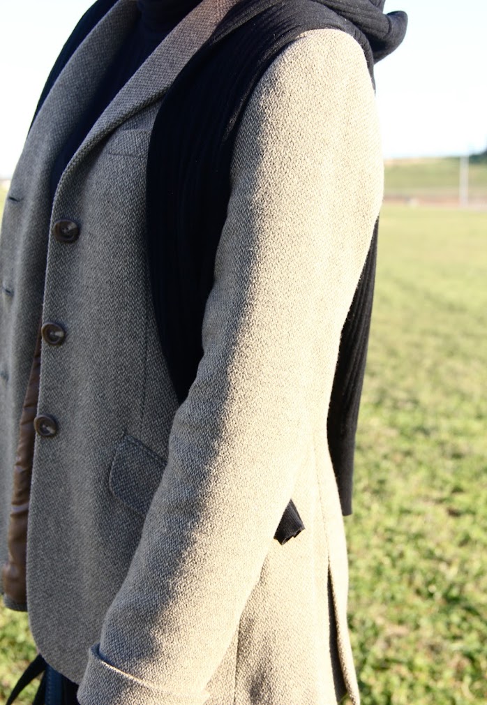 guapa!!!!me encanta el look!!!!Te pongo un 10 (a final de mes, sabrás que es!!!) la americana me parece preciosa, pero el toque del jersey por los hombros…..me enamora!!!jaja