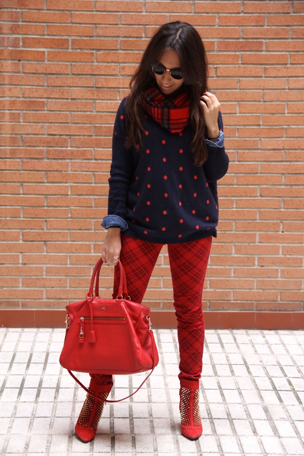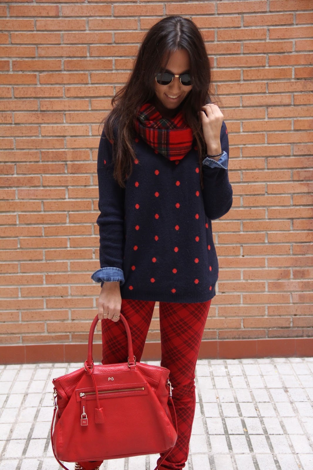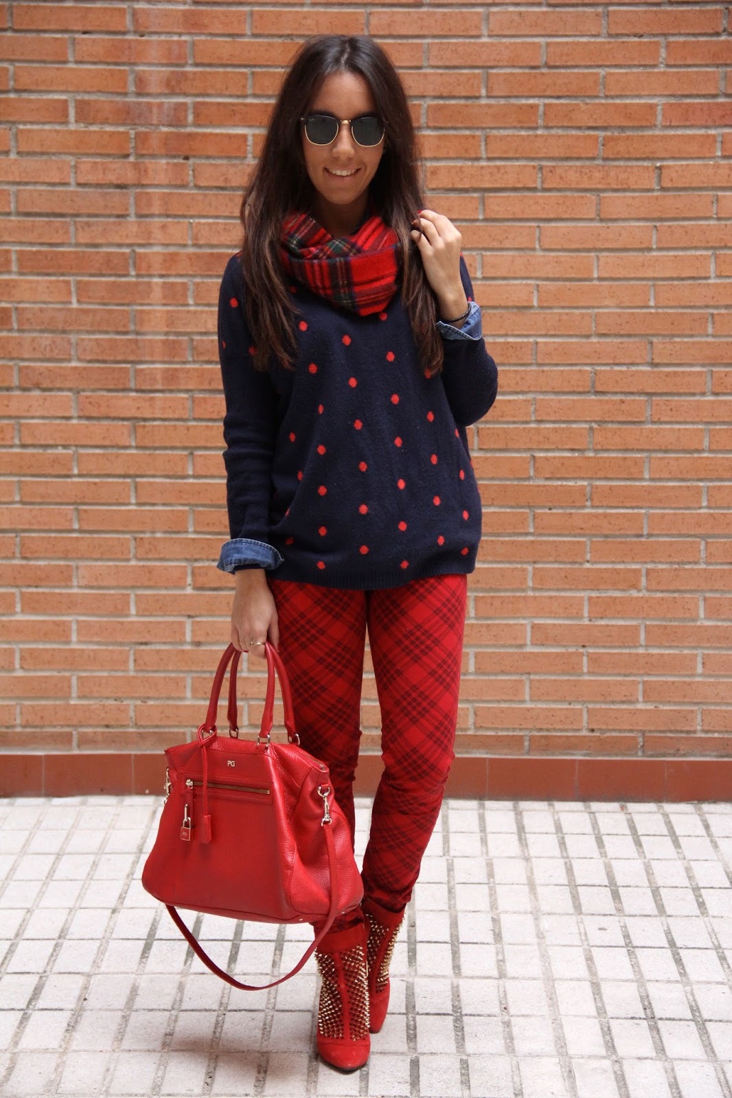 Ultimamente me ha dado por mezclar estampados y tendencias y aunque al pensarlo pueda parecer atrevido el resultado me sorprende a positivo y me gusta, es el caso de este look, me acababan de regalar los pantalones y estaba deseando estrenarlo, ese día abrí el armario y vi el jersey de lunares y al verlo juntos me encantó. Estoy encantada con que las tiendas tengas miles de prendas rojas, no se si lo habéis notado pero la mayoría de las marcas han traído una temporada de otoño/invierno bastante colorida, algo que me alegra ya que no porque las temperaturas sean bajas y frías debemos vestir oscuras y monótonas ¡viva el color! ¿Qué os parece?¿sois de mezclar estampados? Si no lo sois os animo a ello porque os divertiréis ideando nuevas combinaciones, al fin y al cabo para eso sirve la moda, para disfrutar con ella.