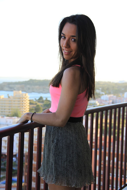 La falda es preciosa y me encanta la combinación con los tonos flúor, los cuales creo que te sientan genial con tu tono de piel.