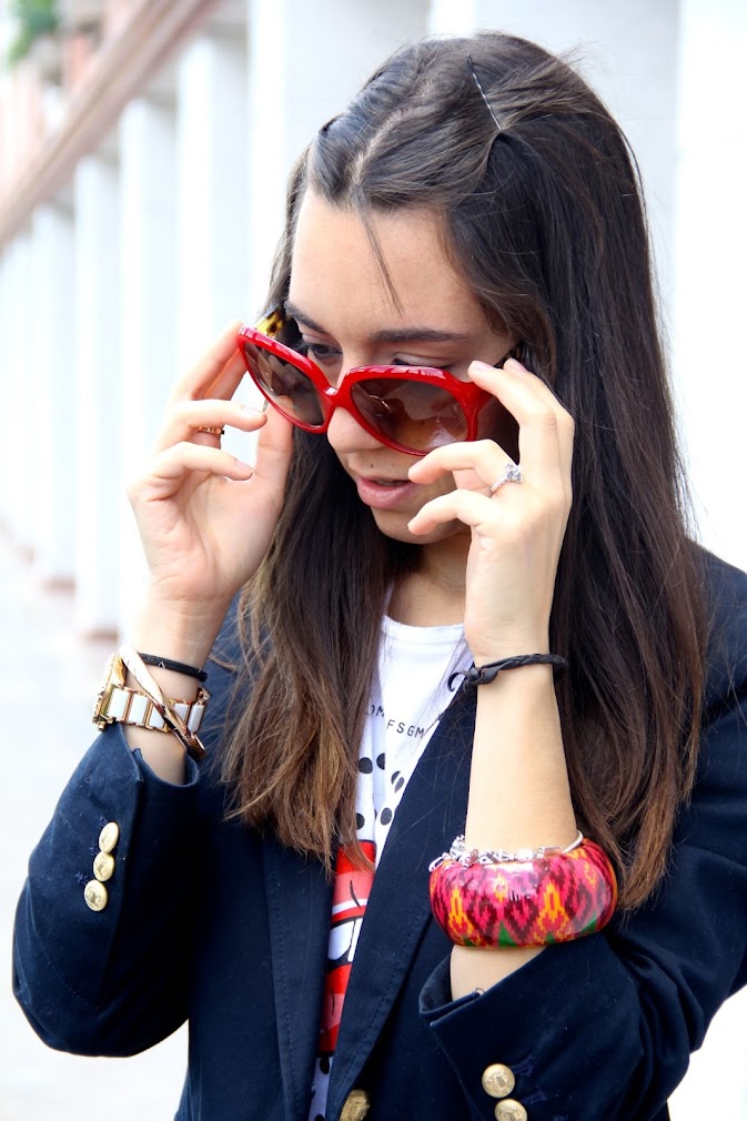 dos bolsos en uno. En vez de hacer el forro de tela como habitualmente se hace, lo han creado en piel y en forma de bolso pequeño que su propia asa larga que puedes ponerte a modo de bandolera. Os lo enseñaré pronto juntos para que los veáis. Repito la camiseta que tanto os gustó. Y las gafas del verano, va a sonar a tontería pero no os pasa que cuando os ponéis algún complemento os sentís vosotras 100% y os gustáis?, pues eso me pasa a mi con las maxi gafas rojas. Mañana habrá nuevo sorteo, no os lo perdáis, ya sabéis como siempre, más y mejor.