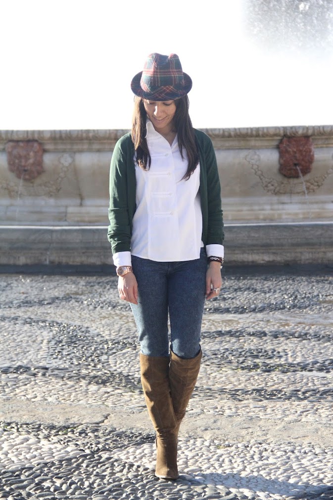 We have spent the weekend in Seville, enjoying one of our favorite cities, family and good weather. On the last day we decided to walk around the Plaza of Spain, one of my favorite sites, it was beautiful, do not you think? comfortable look for the occasion, jeans, boots and hat.