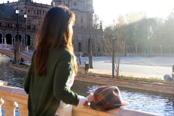 Como sabéis, si me seguís a través de instagram habréis disfrutado de algunos de nuestros momentos, este fin de semana hemos estado en Sevilla. Hemos disfrutado de agua y sol a partes iguales. Curiosamente estas fotos son de ayer, nuestro último día allí y para despedirnos decidimos pasear por la Plaza de España, uno de los lugares más bonitos de la ciudad, para mi tiene un encanto especial, había muchísima gente disfrutando del sol y el domingo sentados en ella. Para ello me decanté por un look sencillo y cómodo, como tenía que llevar abrigo obligatoriamente porque a pesar del sol hacía frío, no suelo complicarme demasiado, porque odio ir como una cebolla con mil capas. Tengo este sombrero desde hace muchos años pero no se si lo habéis visto alguna vez.