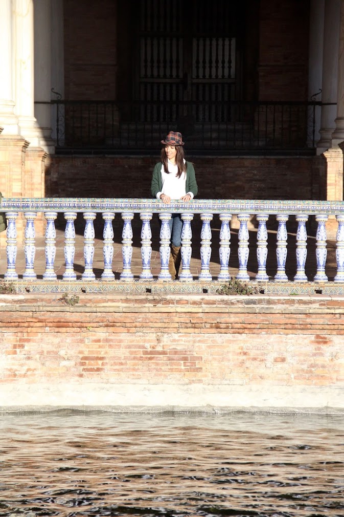 We have spent the weekend in Seville, enjoying one of our favorite cities, family and good weather. On the last day we decided to walk around the Plaza of Spain, one of my favorite sites, it was beautiful, do not you think? comfortable look for the occasion, jeans, boots and hat.