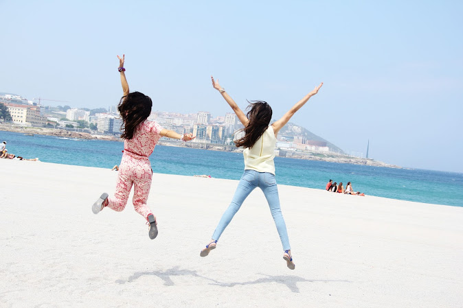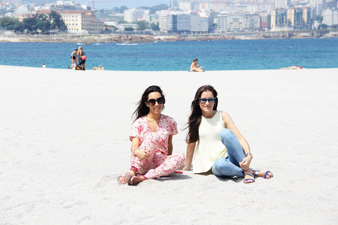 Después de todo el ajetreo que envuelve a una celebración, al día siguiente nos levantamos más temprano de lo que pensamos al acostarnos y como hasta por la tarde no cogíamos el tren de vuelta a Madrid, dedicamos el día a visitar un poco más La Coruña y disfrutar de su preciosa playa, lástima que no metimos el biquini en la maleta. Os voy a preparar un pequeño post con fotos de la boda y la fiesta de celebración, no son muchas por lo que os haré un popurrí. Pero vamos con el día después, amaneció un precioso día soleado, habíamos descansado tan bien que nos levantamos llenos de energía para pasear. Buscando comodidad recurrí al último mono que ha entrado en mi armario. Visité Flamenco Chic para elegir la prenda de vuestro concurso (¿habéis participado ya?, hazlo aquí) y no pude resistirme, me encantó su forma estrecha por abajo y el estampado, además de los detalles que caracterizan a la marca como el cinturón cordón con borlas, no puede gustarme más. Lo combiné con mi ganga del verano, las sandalias de Pepita Pérez (9.99euros!!!) y el mini bolso también de Flamenco. Es el primer bolsito que