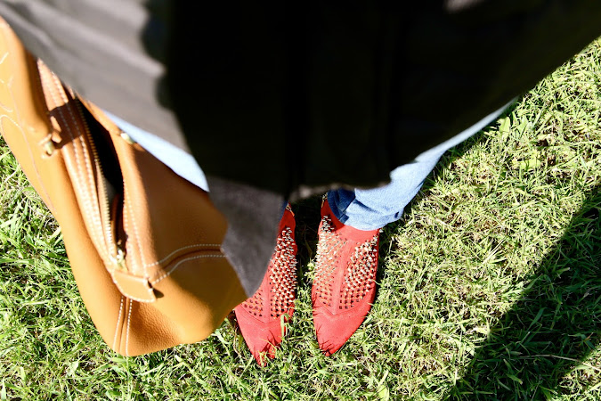¿Cómo va transcurriendo la semana?, hoy os quiero enseñar el look que elegí para viajar de vuelta a casa, han descendido las temperaturas así que nada com un buen abrigo para hacerle frente. Ahora si os enseño bien mi gangazo de rebajas, las súper botas rojas, son bastante especiales por los pinchos, y por su color, soy consciente de que provocarán en vosotros sentimientos muy diferentes, ¿qué os parecen?, ¿cuál ha sido vuestra ganga de las rebajas?