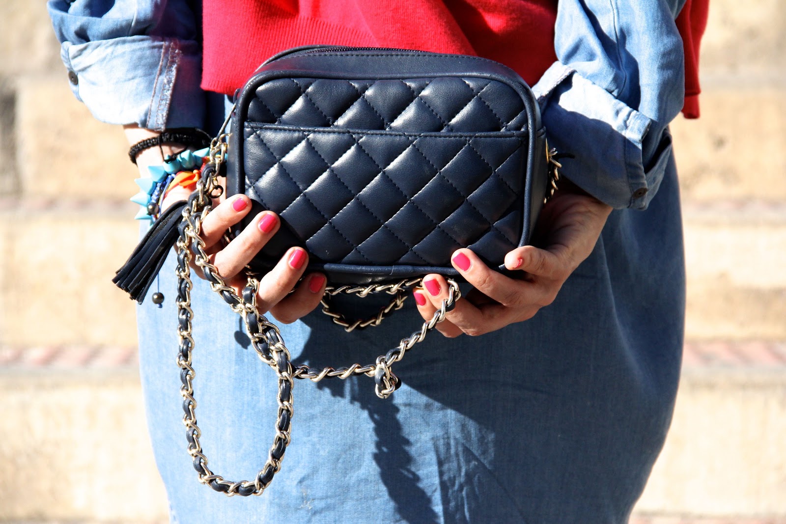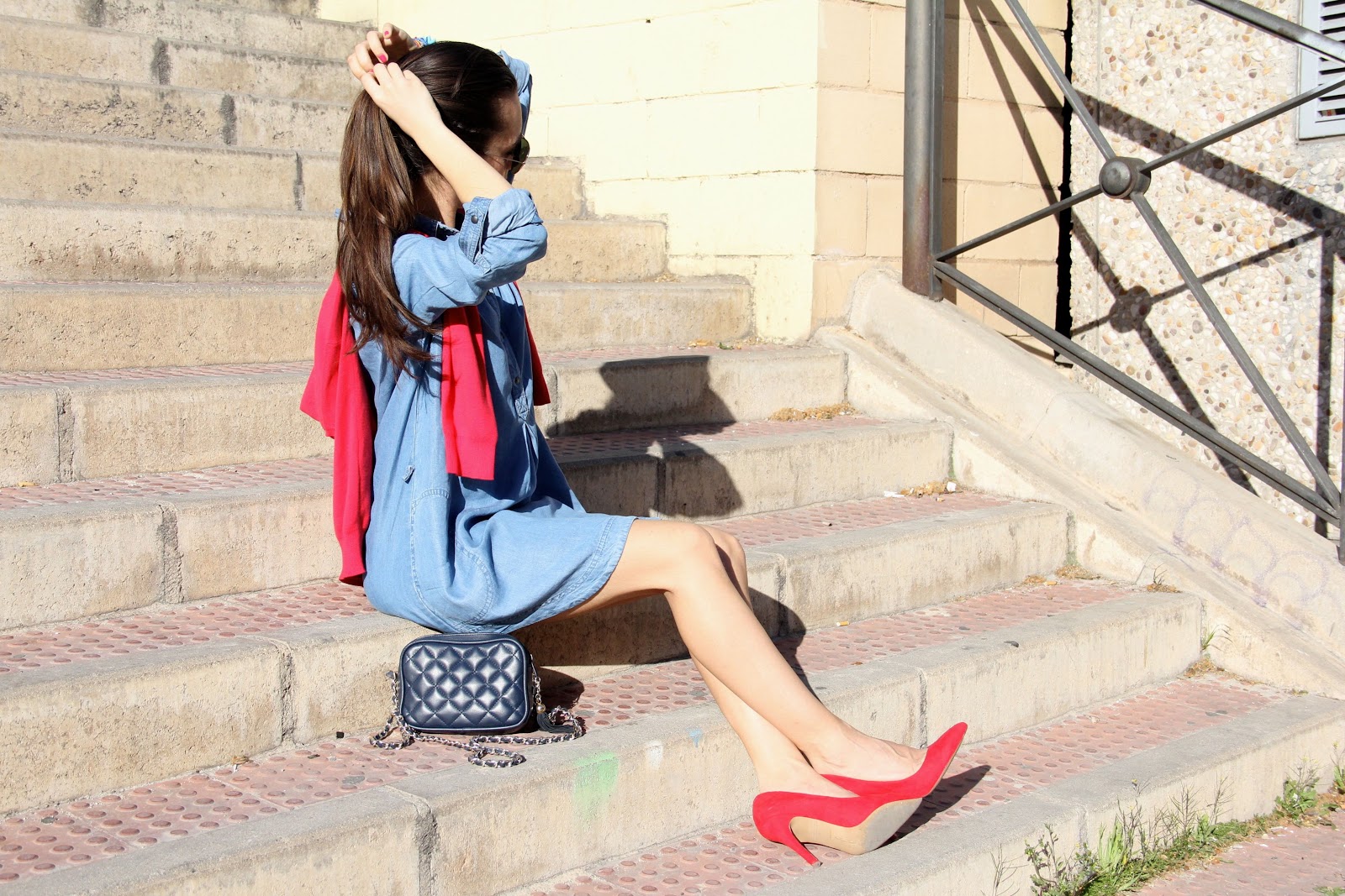 abril 19, 2013 at 14:45A mi me cuesta un poco quitarme las medias y ponerme falda ¡valiente! estas muy guapa, siempre me ha gustado mucho la combinación denim y rojo