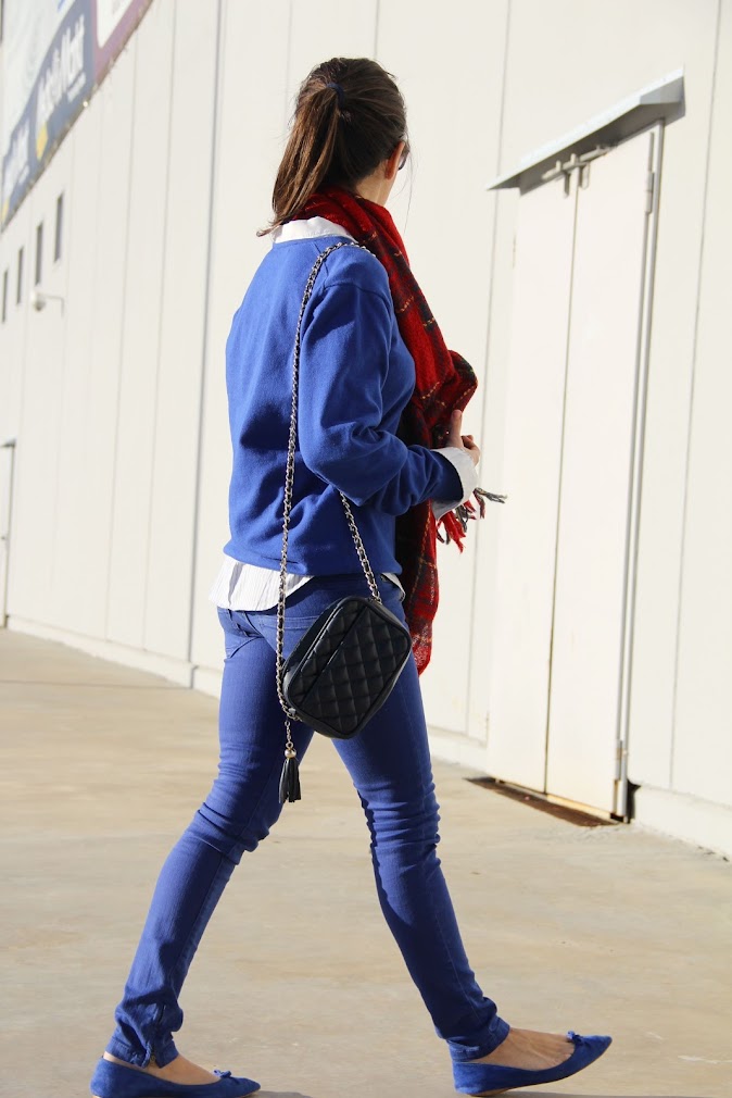 En el look encontráis una de mis combinaciones favoritas para el azul añil, el rojo, a pesar de ser dos colores vivos creo que se complementan bastante bien. Un look azul total con un toque de contraste a cuadros. Y hasta aquí por hoy, mañana no os olvidéis de pasar por el blog porque habrá un sorteo que creo que os gustará bastante.