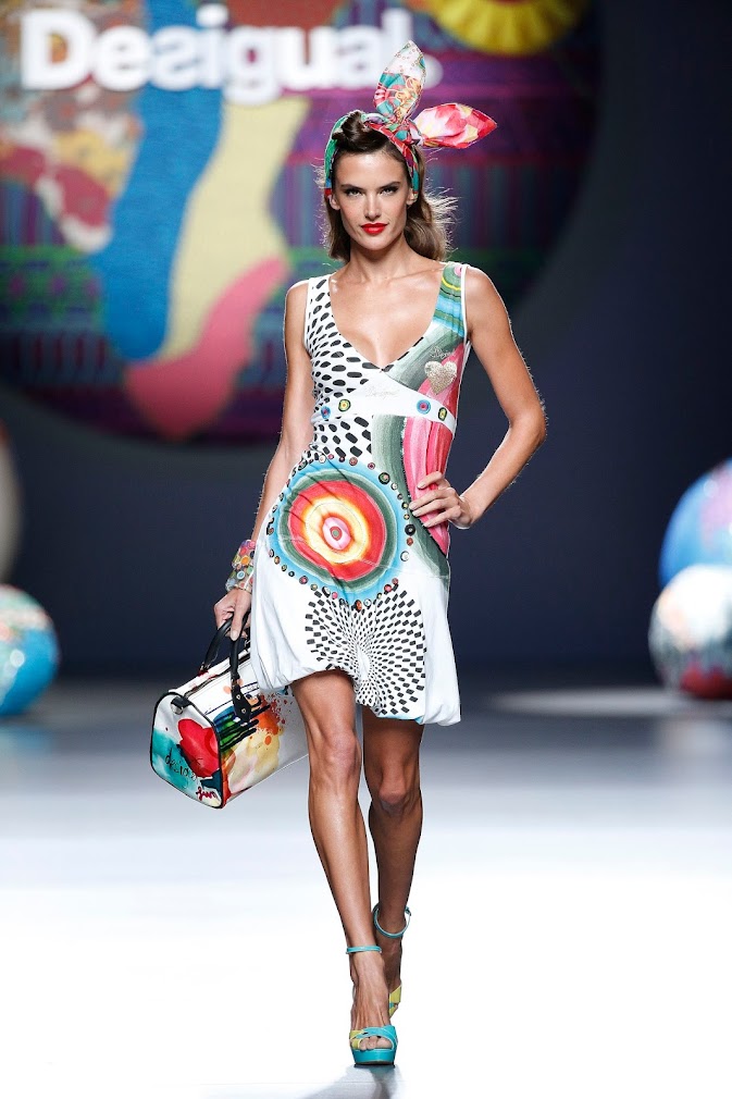 con la que las modelos desfilan, a veces se palpa el nerviosismo y la tensión que llevan las modelos sobre la pasarela. Pero cuando asistes a un desfile de Desigual el rollo cambia, se respira diversión, alegría, las modelos desfilan con una sonrisa de oreja a oreja, se nota que les gusta lo que hacen y sobretodo que lo están disfrutando, tienen otra soltura sobre la pasarela. Desigual presentó una colección llena de color (creo que no hay un color que no hayan utilizado!!!) formas geométricas en sus estampados, toques florales y sonrisas, muchas sonrisas encabezadas por la top Alessandra Ambrosio. Para la ocasión elegí un total look de Desigual, pantalones de corte baggy de la línea Lacroix para Desigual, (Las celebrities como Olivia Palermo entre otras, en la New York Fashion Week eligieron todas prendas de la línea Lacroix para Desigual), blusa blanca básica y la perfecto, digo LA porque se ha convertido en la prenda estrella y más especial que tengo ahora mismo en el armario, y promete dar mucha guerra en los looks del blog. Complementos en plata, sencillos cediendo todo el protagonismo a los aros, siempre me encantaron las argollas pero reconozco que hace unos años les cogí algo de tirria y las desterré del joyero hasta ahora. ¿Qué os parece?, ¿amáis u odiáis Desigual?, ¿conocíais la línea de Lacroix? Quiero leer todos vuestros comentarios, gracias por estar siempre ahí, mañana mas y mejor.