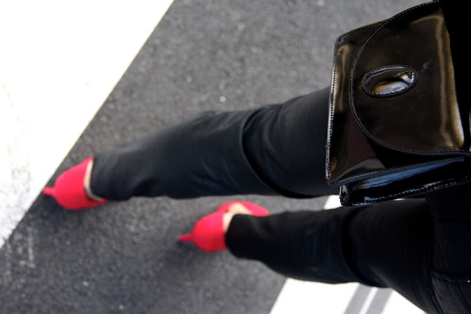 noviembre 14, 2013 at 09:56Un outfit muy xulo. La combinación de rojo, gris y negro es simpre un acierto y los zapatos son una pasada!!