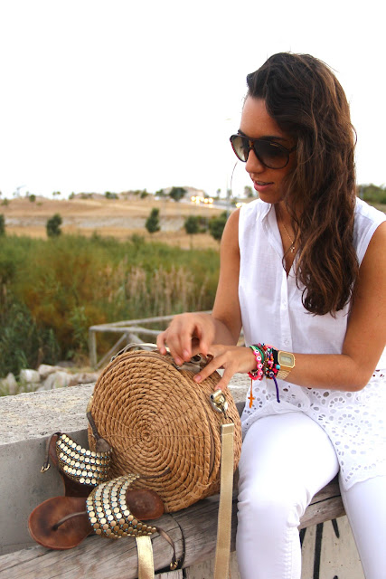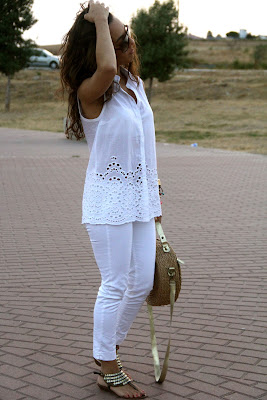 Happy Monday!Today I show you a look completely white, if you follow the blog from the beginning you know that is one of my favorite colors. So today it is the protagonist. The blouse for me, is one of the best creations Purification Garcia has released this summer, I love it. Also I teach you my favorite summer bag because I can´t stop to wearing it. Since last year primark sold a similar model and I was behind him but it sold out almost before they reach the shops. And this year when I saw him on Day to Day I was happy.