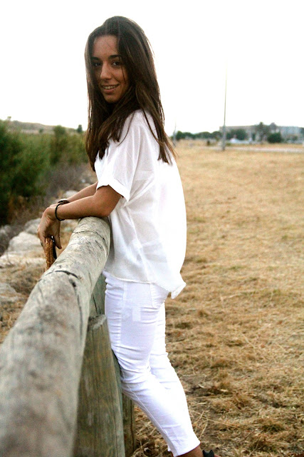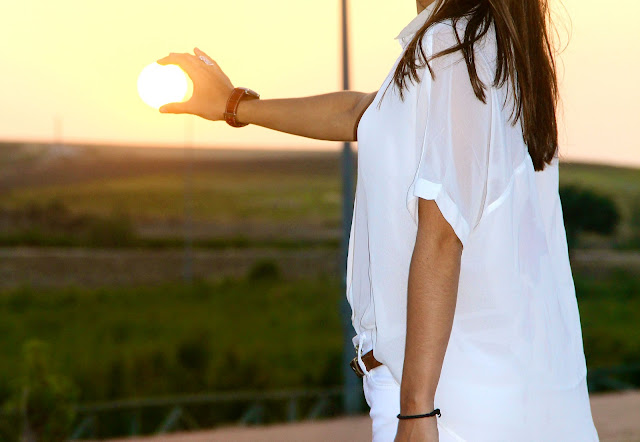Pero vamos a lo que vamos, el look de hoy es blanco total, me encanta este color y creo que jamás me cansaré de el,lo uso tanto en verano como en invierno. Para romper un poco he utilizado los complementos en color piel. Muchas me habéis preguntado tanto por las sandalias estas como por las amarillas y print, para mi son muy cómodas y les estoy sacando muchísimo rendimiento, pero si no estáis acostumbradas a usar tacón, lo mejor es llevar zapatos con plataformas o cuñas que permiten subir unos centímetros sin que los pies lo sufran, porque no hay nada peor que un dolor de pies.