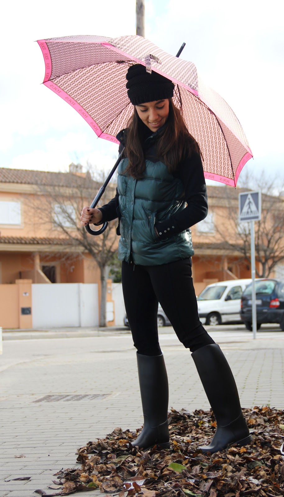 enero 30, 2013 at 13:00Buen look para este tiempo tan horrible, aunque por suerte va mejorando. Me encantan tus botas y el paraguas 😉