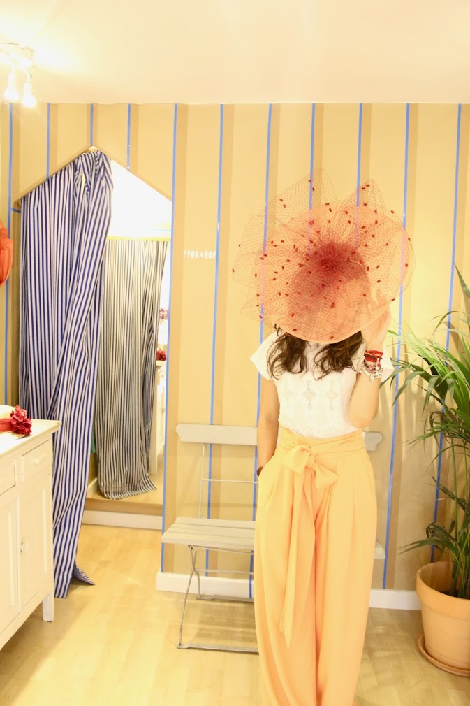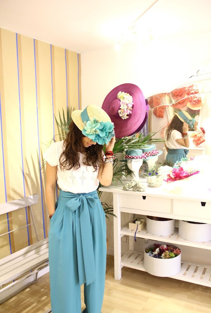 Last week I had the opportunity to visit and enjoy the wonders created by Rita Von firm founded by two young capable of making us feel special with her creations. There is something for all tastes, sizes and colors. Besides headdresses also make pants you see in the photo and which I fell in love. The headdress that I want is the canotier, simple, elegant and very comfortable, and we can use it many times since that would only change the complement. I hope you enjoy the photos and video and remember that you buy one if you can make orders from anywhere in Spain and abroad.
