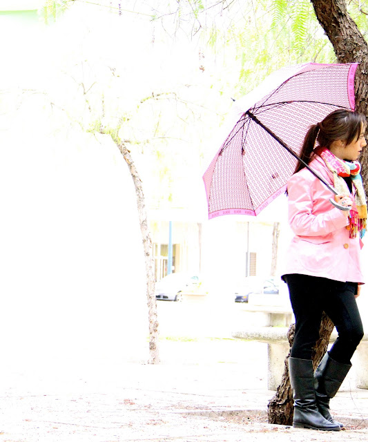 Decidí centrar el protagonismo de mi look lluvia al color rosa por lo que busque prendas neutras como es el total black aportándole color con el fular y la gabardina. Un mismo look puede cambiar mucho en función de con qué lo complementemos ¿no os parece?. Espero que hayáis pasado un gran fin de semana y tengáis las pilas cargadas, a por el lunes!!!